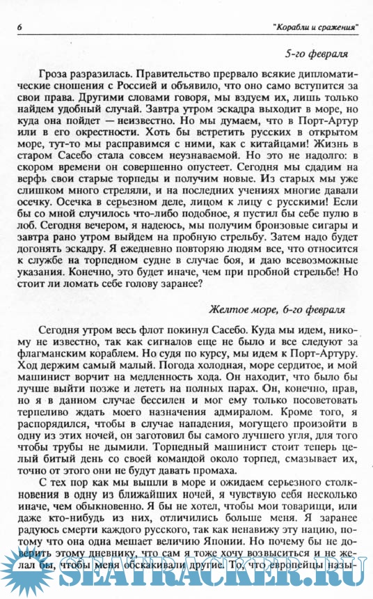 Заметки эти очень интересны. Между прочим, любопытны в них весьма своеобразное освещение многих подробностей этих боев и явно неприязненное отношение автора к европейцам вообще и к русским в частности, характерное чисто японское бахвальство, а также замечания об адмирале Того.
