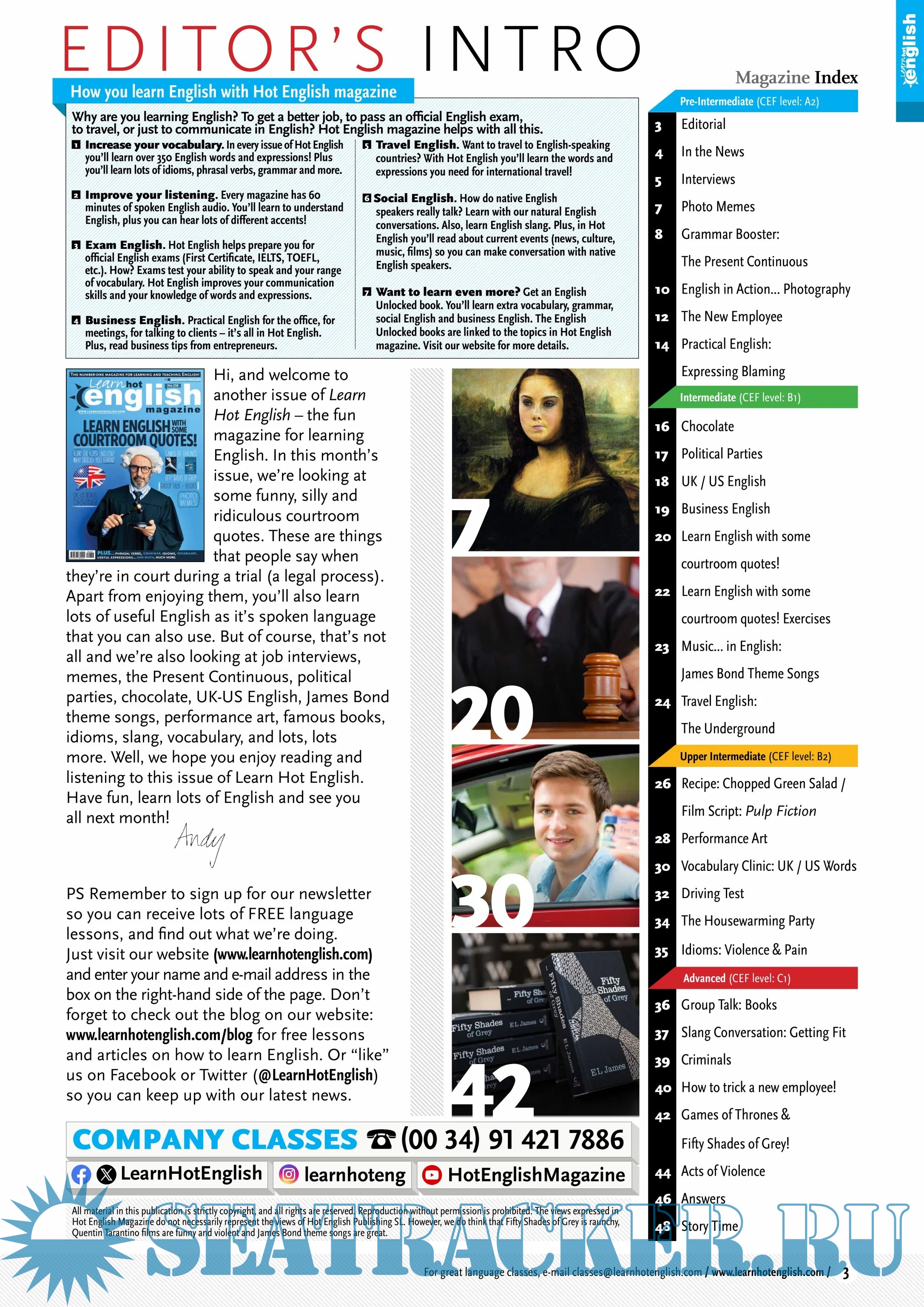 Learn English with the Hot English magazine for all levels (easy – advanced).
