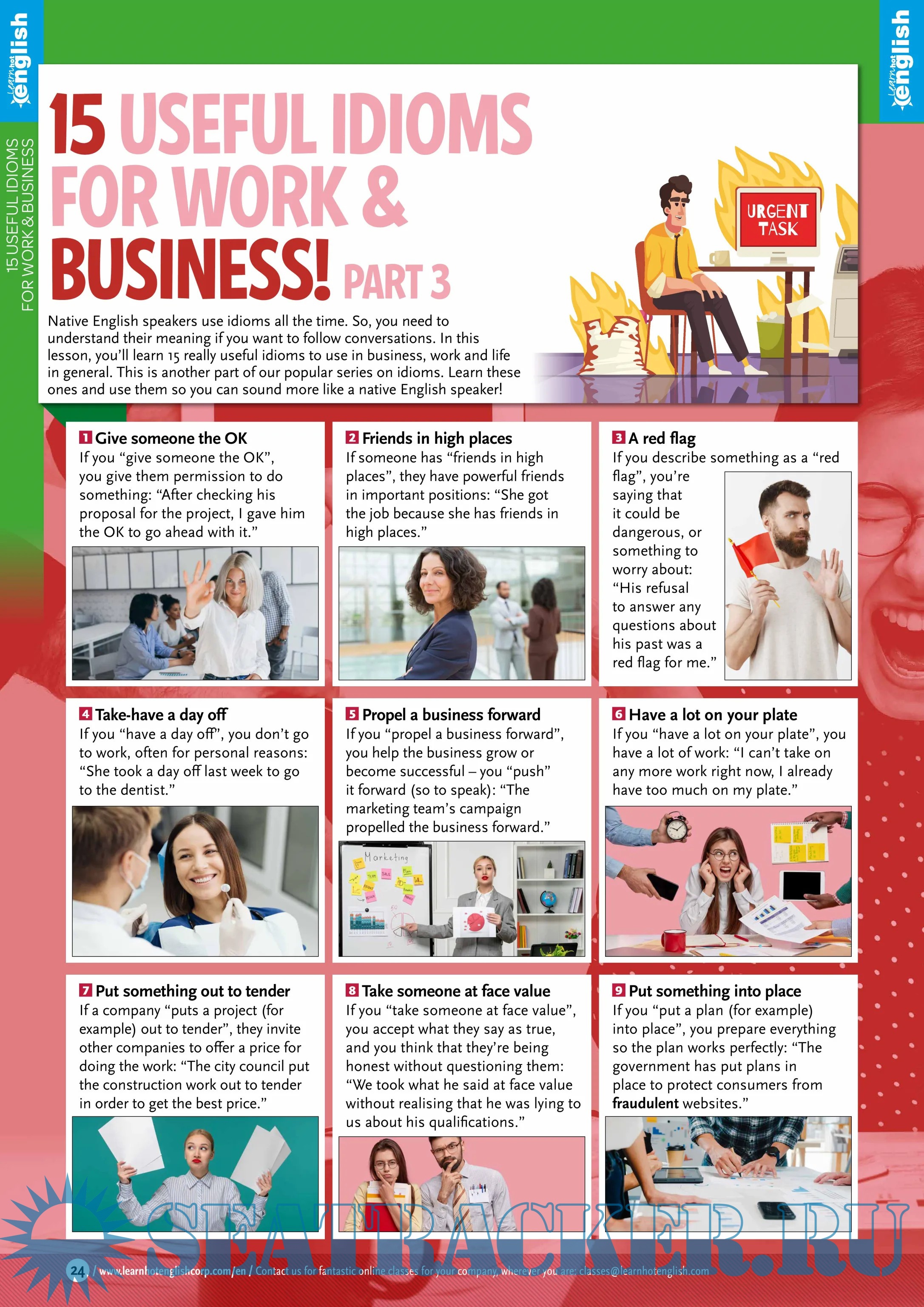 Idioms, phrasal verbs, useful expressions, grammar, vocabulary. Learn faster because it’s fun!