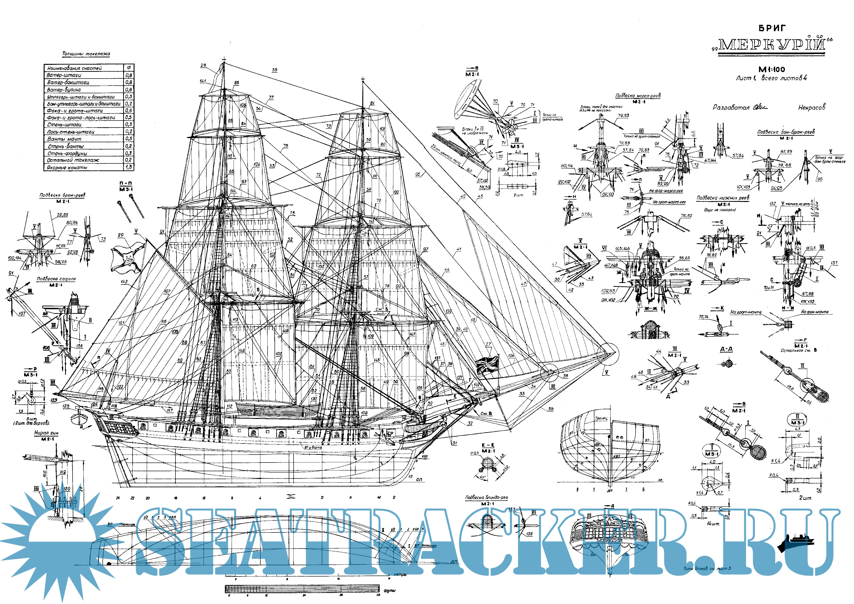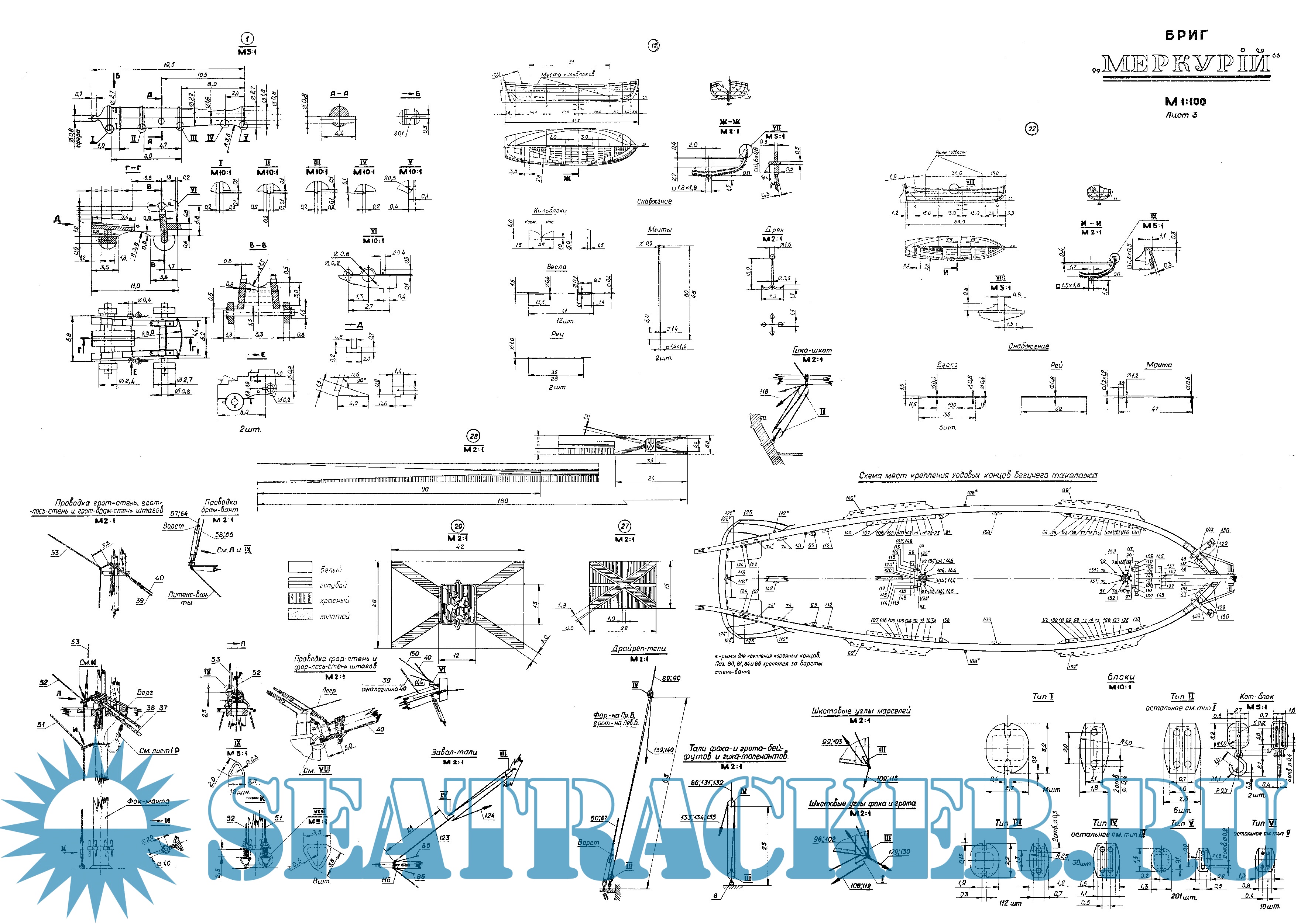 Чертежи брига "Меркурий" (Россия) 1820 год