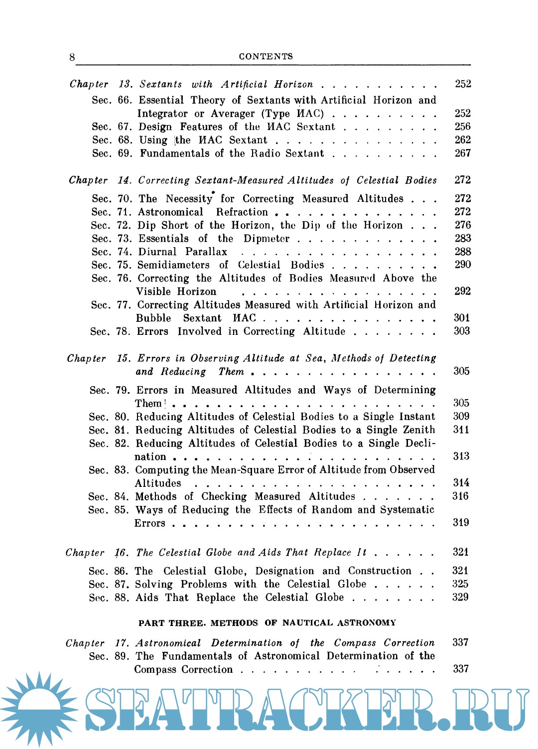 Navigation, as we know, deals not only with the solution of general geographical problems that arise when travelling by sea (the shape and dimensions of the earth, cartography and its applications, elc.) but also with determining positions and instrument corrections from observations of terrestrial objects like beacons, signs and so forth.