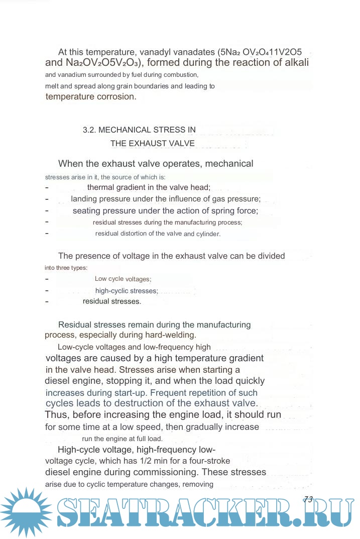 The issues of carbon formation on valve plates and the mechanism of damage and destruction of exhaust valves are considered. The book is intended for a wide range of ship mechanics operating the main engine, as well as for the students of advanced training courses.