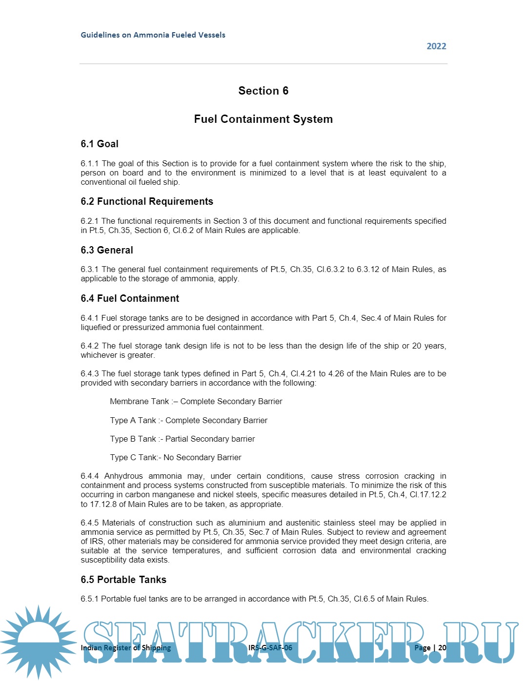 Year: 2022 Language: English Author: Indian Register of Shipping Publisher: Indian Register of Shipping Format: PDF Quality: eBook Pages count: 41 Description: These guidelines are intended to provide requirements for ships using ammonia as fuel in the liquid state in storage tanks. The basic philosophy of these guidelines is to provide provisions for the arrangement, installation, control and monitoring of machinery, equipment and systems in ships using ammonia as fuel to minimize the risk to the ship, its crew and the environment, having regard to the nature of the fuels involved. Throughout the development of these guidelines it was recognized that it must be based upon sound naval architectural and engineering principles and the best understanding available of current operational experience, field data and research and development. These guidelines address all areas that need special consideration for the usage of the ammonia as fuel. These guidelines consider the goal based approach (MSC.1/Circ.1394). Therefore, goals and functional requirements were specified for each section forming the basis for the design, construction and operation. The current version of these guidelines includes requirements to meet the functional requirements for ammonia as fuel. These guidelines have been developed in order to assist the ship owners, ship designers and shipyards in designing, building and operating ammonia fueled vessels.