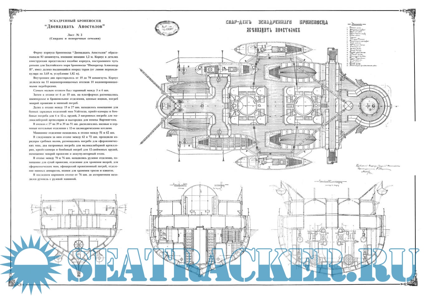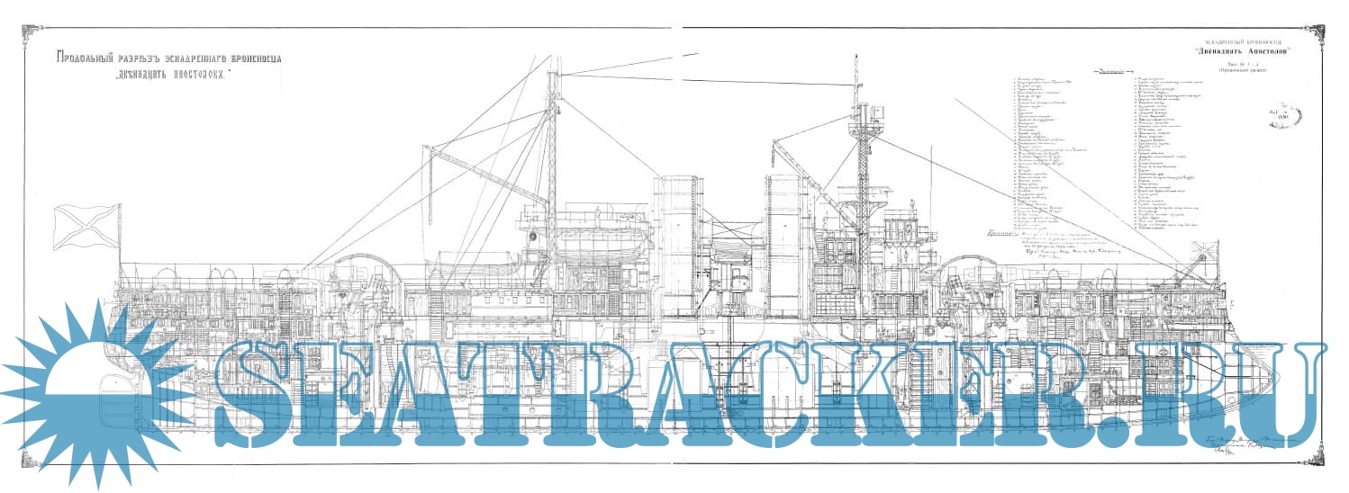 Архивные чертежи эскадренного броненосца ''Двенадцать апостолов'' 1890 год -…