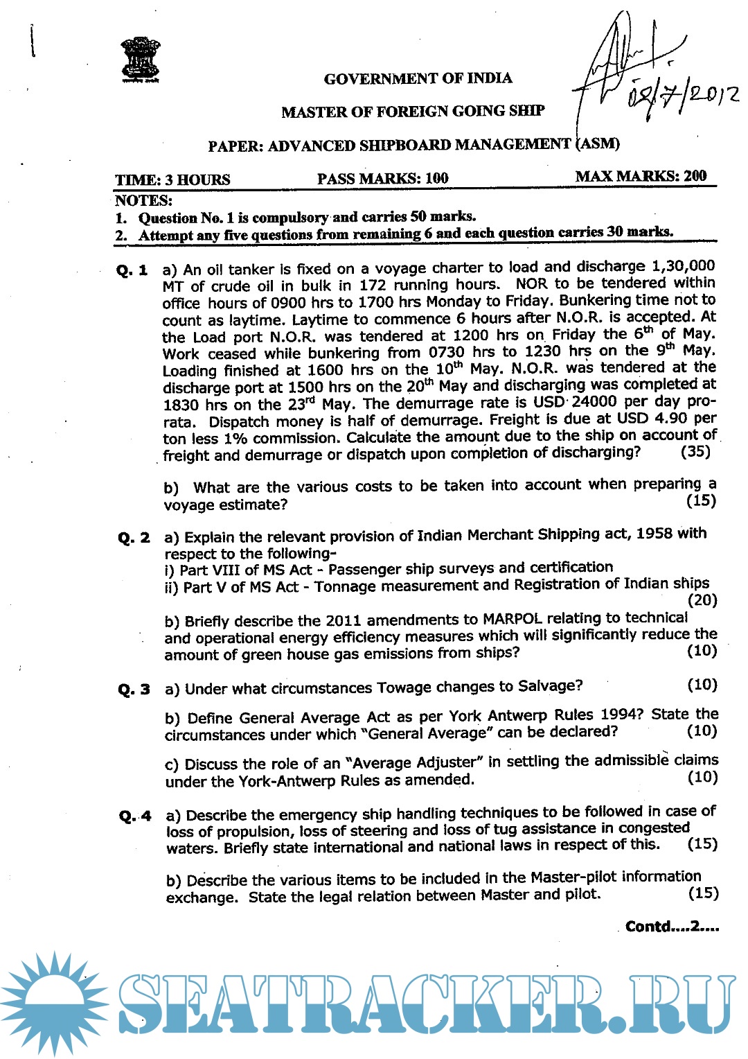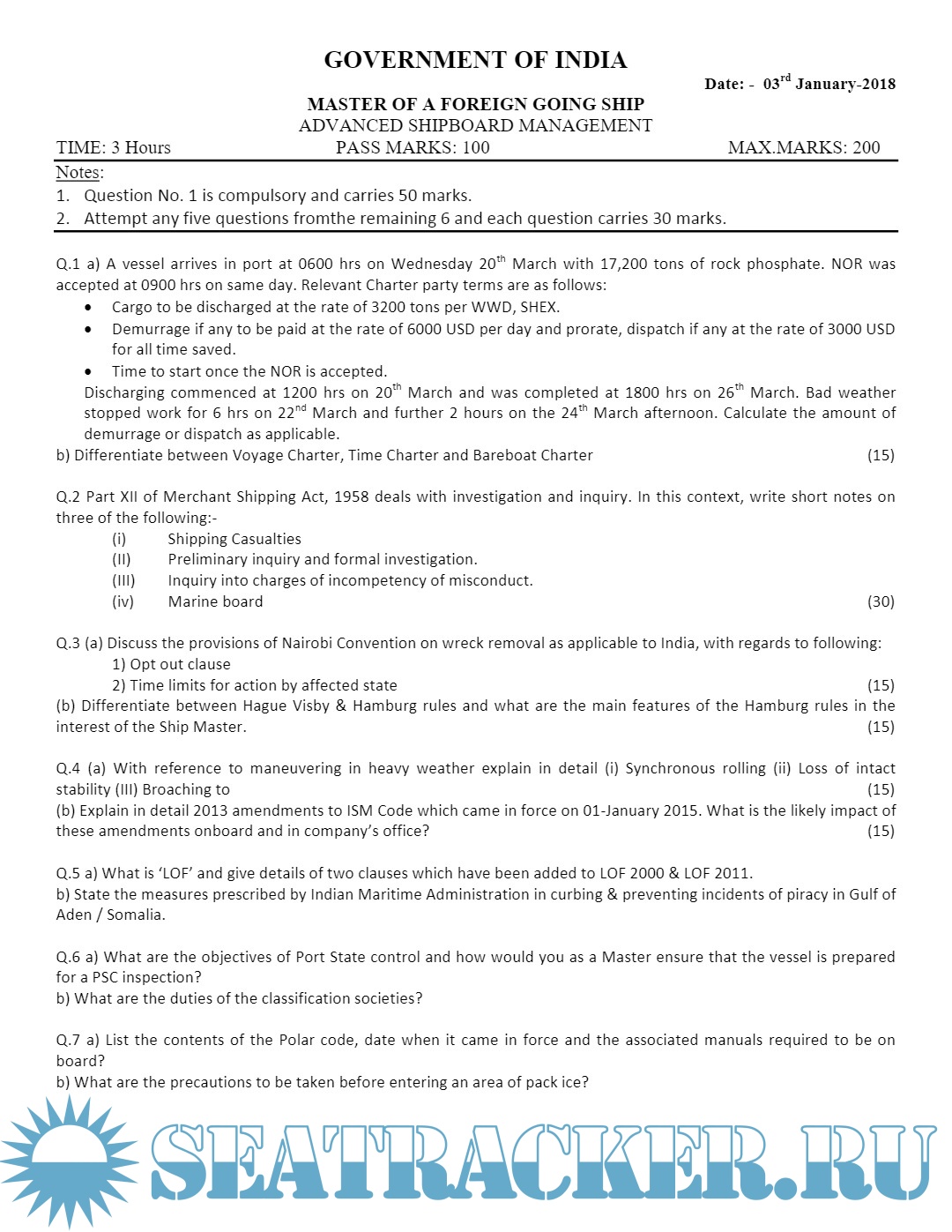 Master's examinations Question paper sets for Mercantile Marine Department (MMD), India.