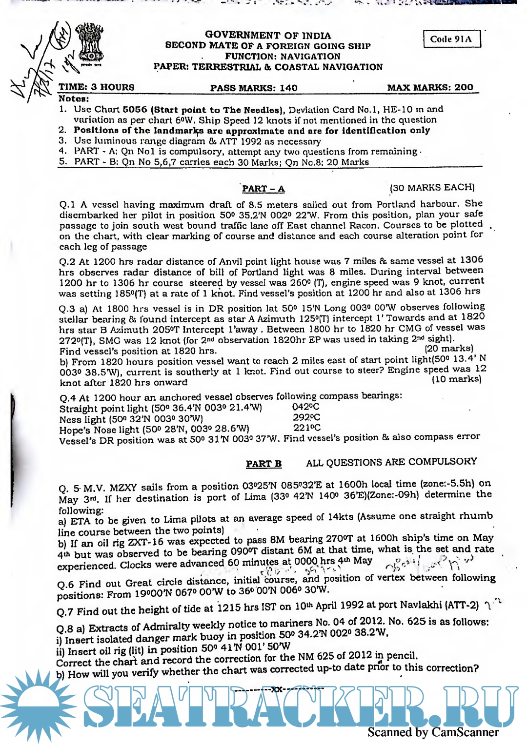 Question Paper Set (May 2023) for Second Mate (F.G.) Mercantile Marine Department (MMD), India…