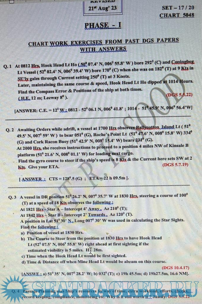 Question Paper Set for Terrestrial and Celestial Navigation (July 2022) for Phase I (Chief Mate…