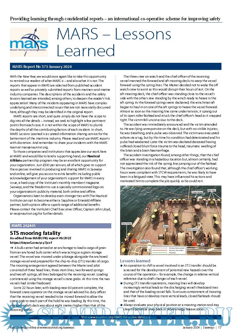 Mariners’ Alerting and Reporting Scheme (MARS) Report (February) - The Nautical Institute [2024,…