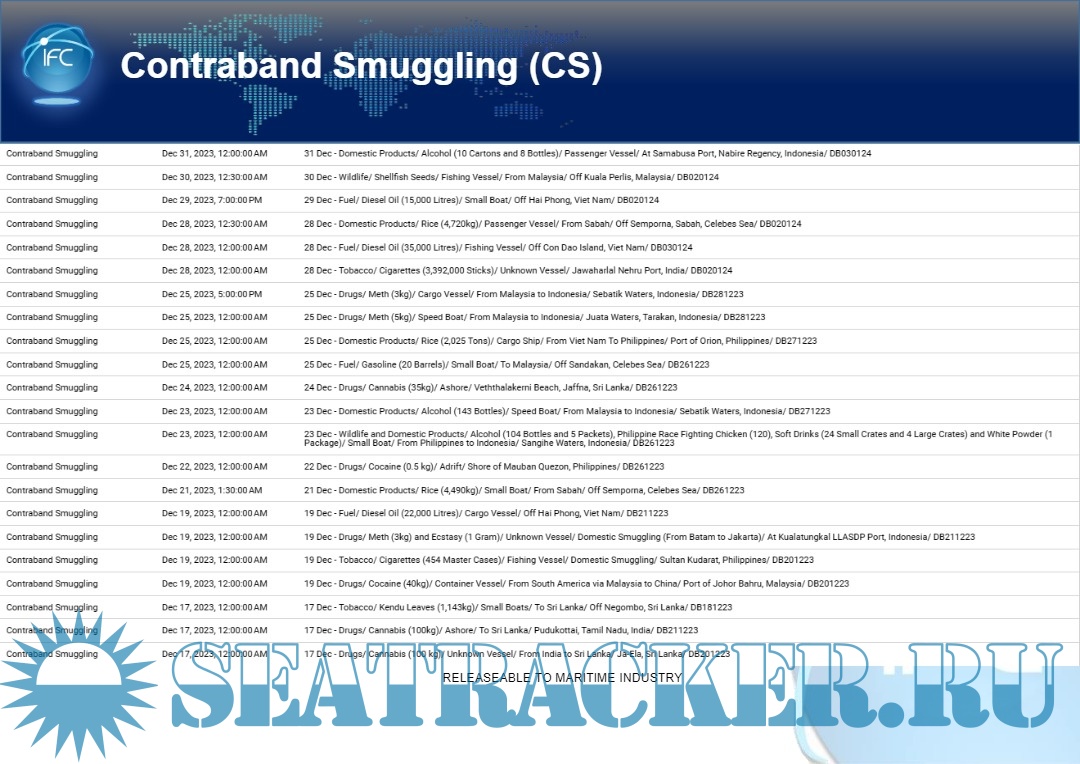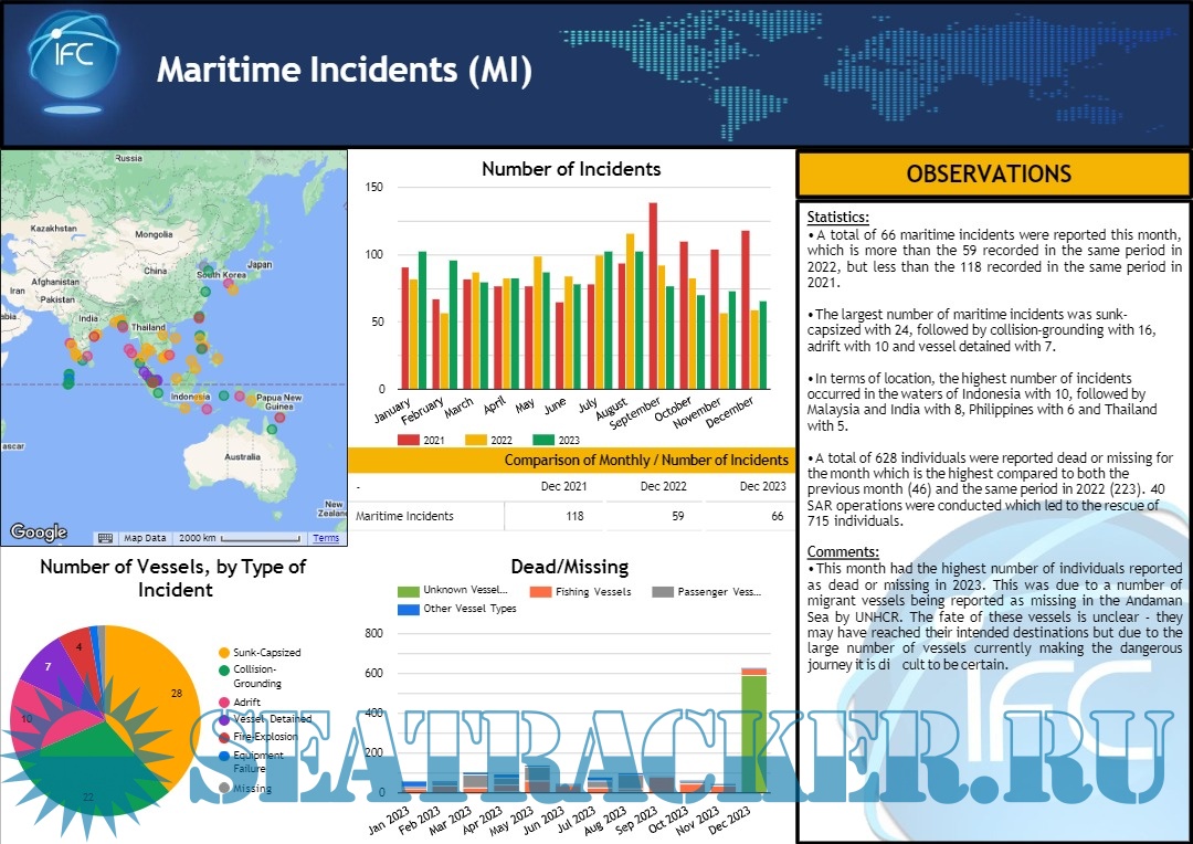 Year: 2023 Language: English Author: Information Fusion Centre Publisher: Information Fusion Centre Format: PDF Quality: eBook Pages count: 45 Description: Monthy Reports & Overview of MARSEC Incidents in the Information Fusion Centre Area of Interest.