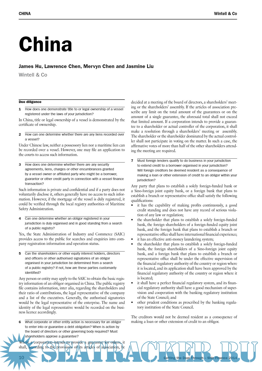 Every effort has been made to ensure that matters of concern to readers are covered. However, specific legal advice should always be sought from experienced local advisers. Getting the Deal Through publications are updated annually in print. Please ensure you are always referring to the latest print edition or to the online version at www.gettingthedealthrough.com Getting the Deal Through gratefully acknowledges the efforts of all the contributors to this volume, who were chosen for their recognised expertise. Getting the Deal Through would also like to extend special thanks to contributing editor Lawrence Rutkowski of Seward & Kissel LLP for his assistance in devising and editing this volume.