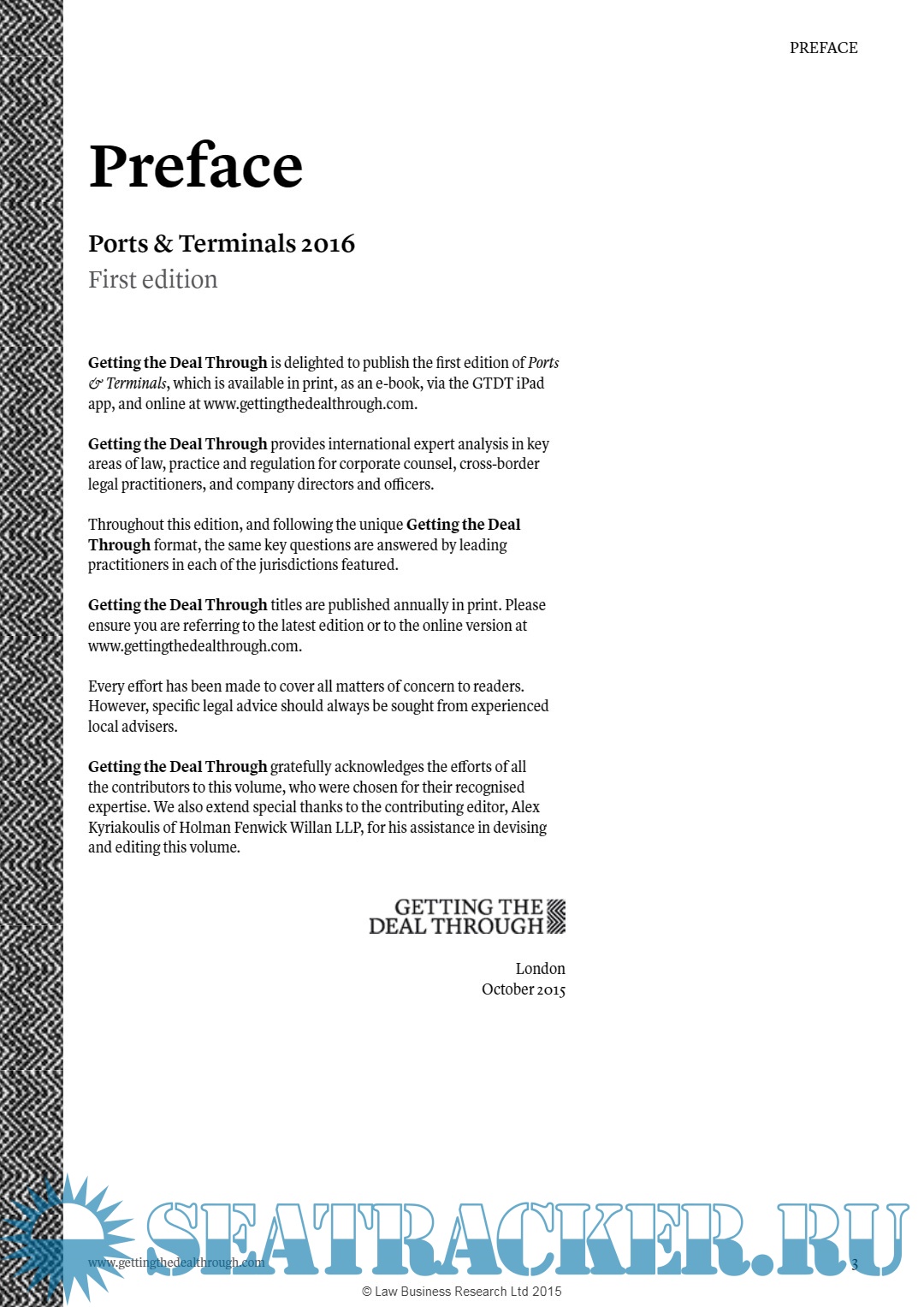 Description: Getting the Deal Through is delighted to publish the first edition of Ports & Terminals, which is available in print, as an e-book, via the GTDT iPad app, and online at www.gettingthedealthrough.com.