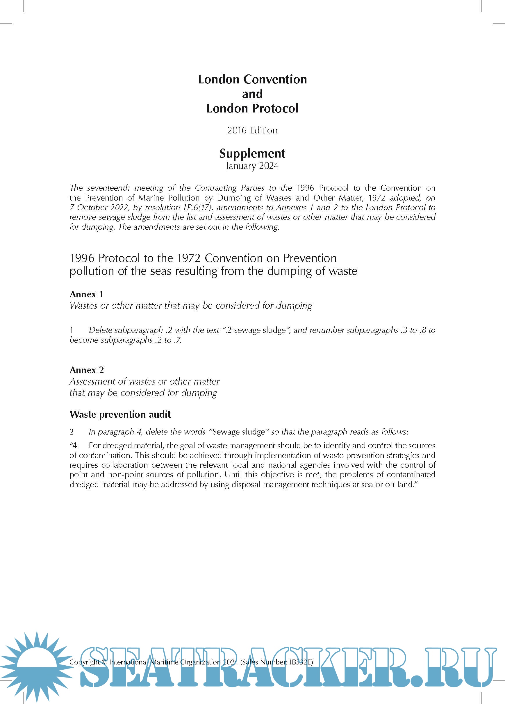 Year: 2024 Language: English Author: IMO Genre: Convention (rules) Edition: 24.01.2024 Format: PDF Quality: eBook Pages count: Multiple Description: IMO Publications Supplements January, 2024 Only. Download the relevant supplement, print it and insert it into your publication. Source: https://www.imo.org/en/publicat...ges/English.aspx