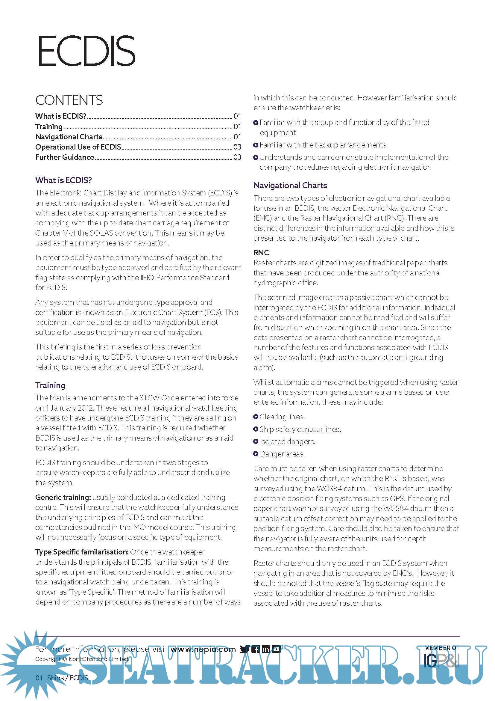 Year: 2023 Language: English Author: NorthStandard Genre: Practical guide Format: PDF Quality: eBook Pages count: 5 Description: This briefing is the first in a series of loss prevention publications relating to ECDIS. It focuses on some of the basics relating to the operation and use of ECDIS on board. The purpose of this publication is to provide a source of information which is additional to that available to the maritime industry from regulatory, advisory, and consultative organisations.