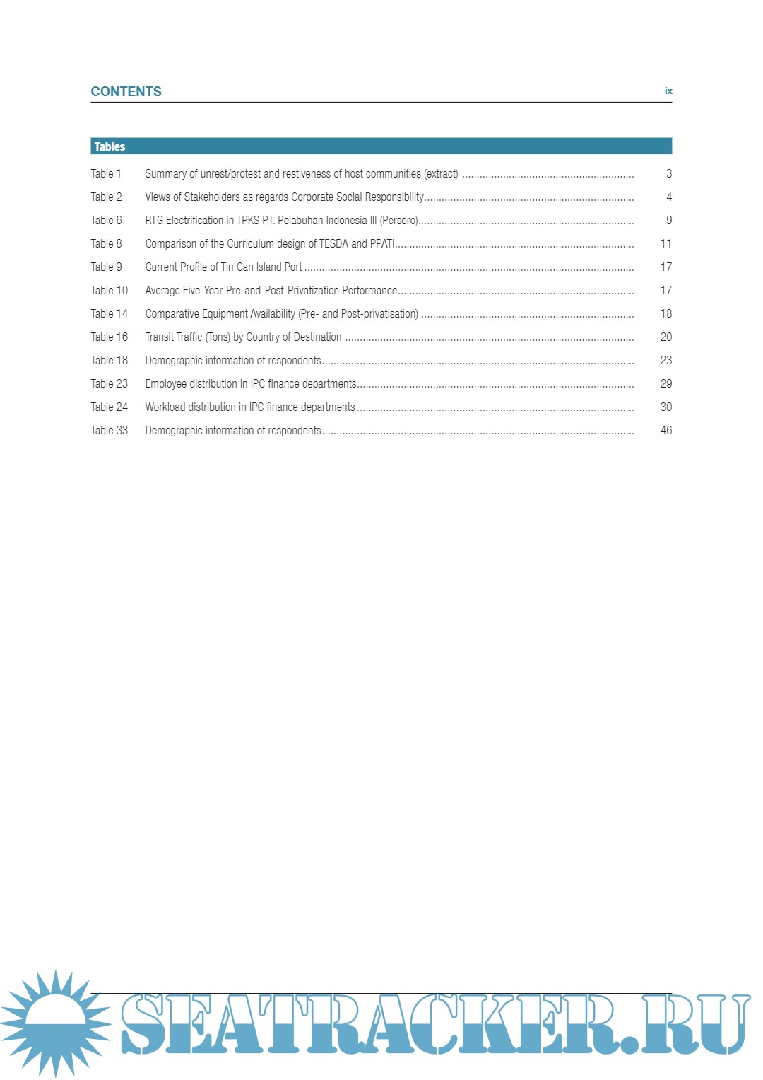 Description: This publication was produced in the framework of the TrainForTrade Port Management Programme of the United Nations Conference on Trade and Development (UNCTAD), financed by the Government of Ireland and the participating ports of Ghana, Indonesia, Nigeria and the Philippines. The programme also receives support from the Dublin Port Company, the Port of Cork Company and Belfast Harbour Commissioners. The summaries of the featured dissertations and participants’ career profiles were prepared by John Moore, Jennifer Doyle, Janjarang Kijtikhun, Dominique Chantrel, Aylwin Zabula and Debbie Francisco under the supervision of Mark Assaf, Chief of the Human Resources Development Section-TrainForTrade, and the overall guidance of Genevieve Feraud, Head of the Knowledge Development Branch and Shamika Sirimanne, Director of the Division on Technology and Logistics.