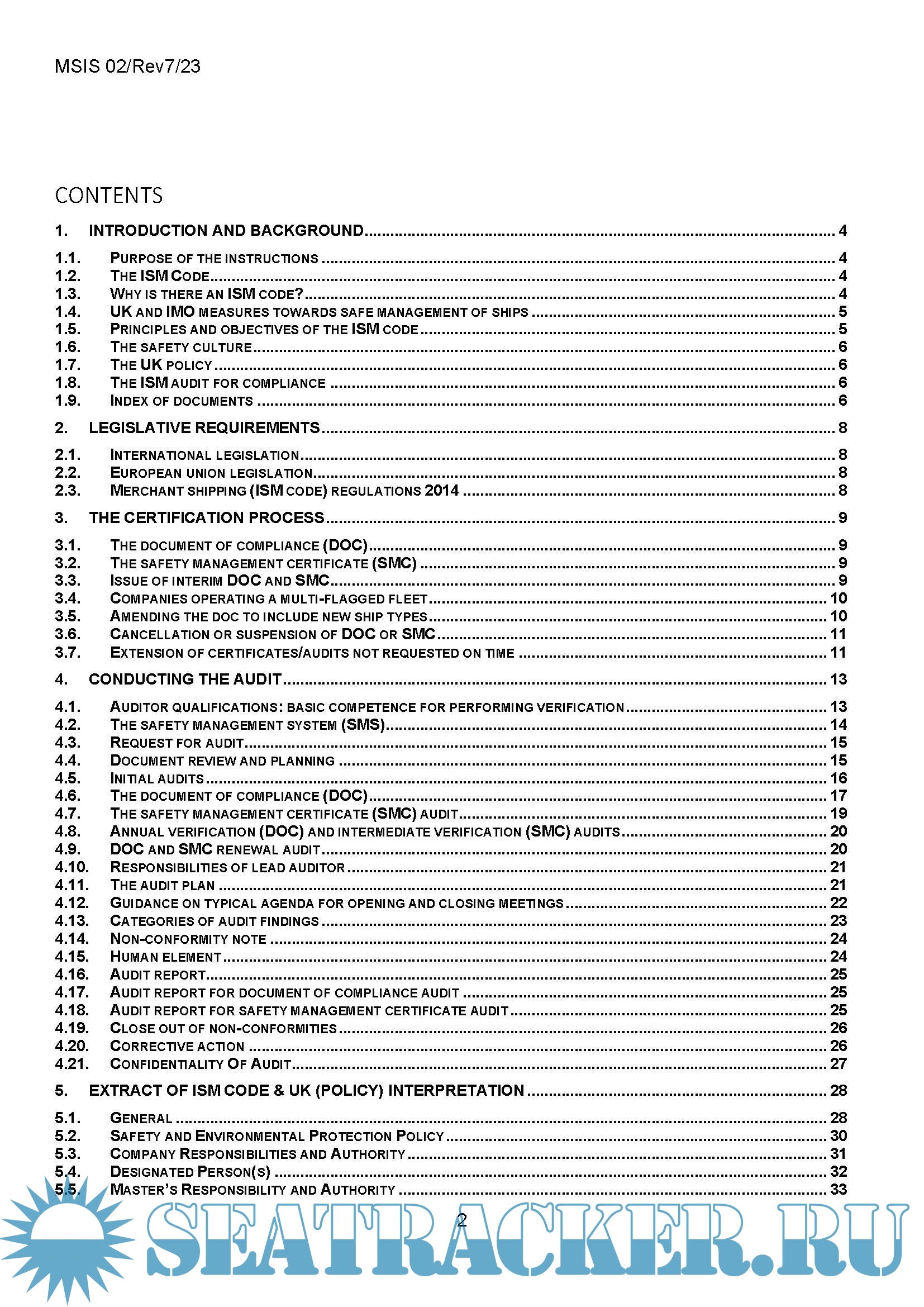 Description: These Instructions to Surveyors have been produced by the Maritime and Coastguard Agency (MCA), an Executive Agency of the Department for Transport (DfT), for the guidance of surveyors auditing safety management systems both at sea and ashore. Additionally, they provide guidance for those concerned with the procedures adopted by the MCA for carrying out audits for verification of compliance with the International Safety Management Code for the Safe Operation of Ships and for Pollution Prevention (ISM Code).