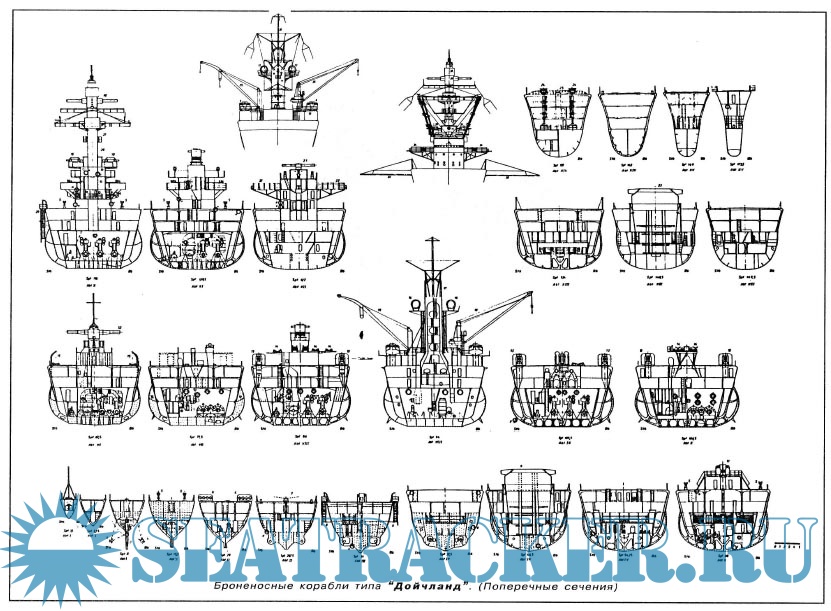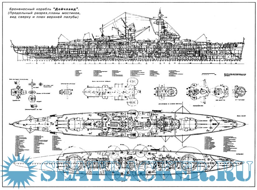 Без преувеличений можно сказать, что создание Дойчланд и однотипных кораблей полностью меняет привычную стратегию и тактику войны на море, равно как и многие взгляды на кораблестроение. Naval Engineering Journal, июнь 1933 г. История проектирования, строительства, боевой службы броненосных кораблей типа Дойчланд, фото, схемы.