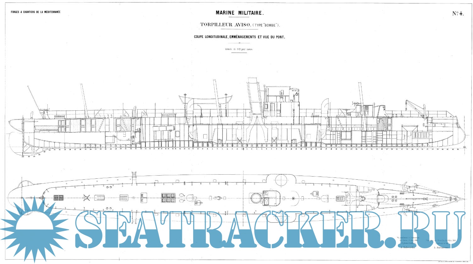 Архивные чертежи миноносца BOMBE 1885 год (Франция)