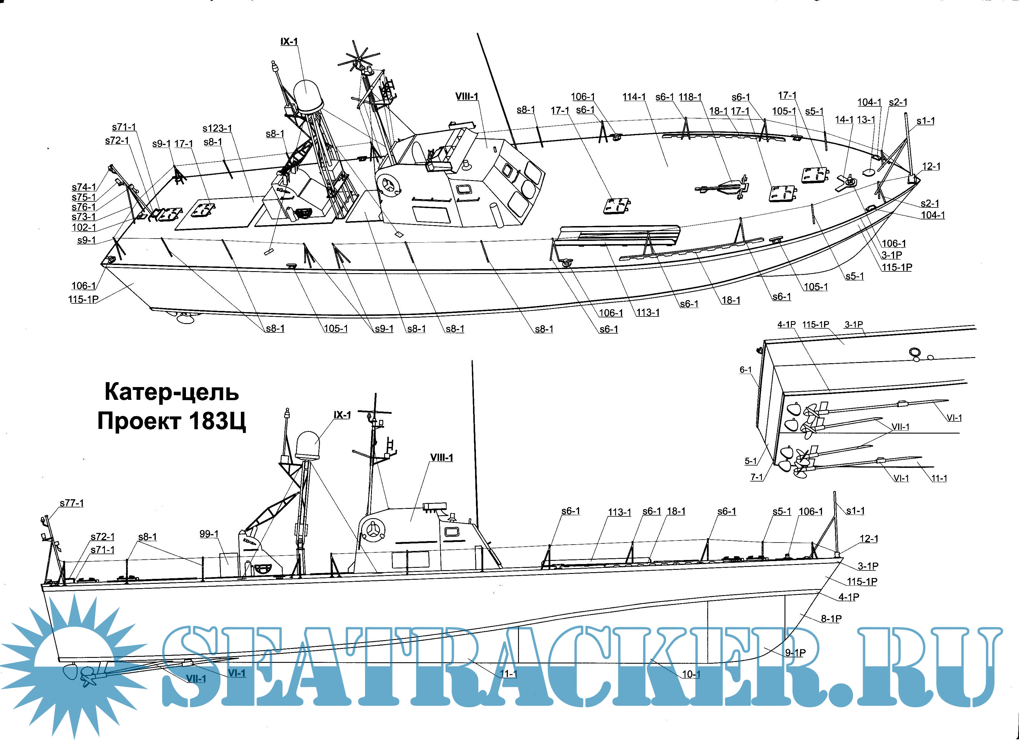 23 листа цветных выкроек и инструкций для изготовления бумажной модели большого торпедного катера или пограничного катера проекта 183 или катера-цели проекта 183Ц (шифр "Большевик") в масштабе 1:100Скриншоты