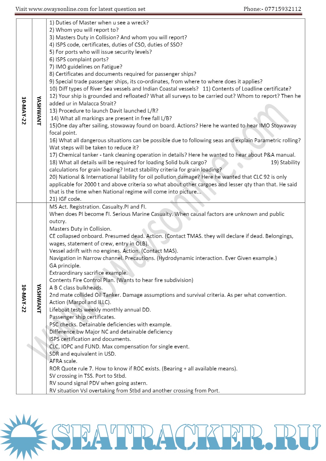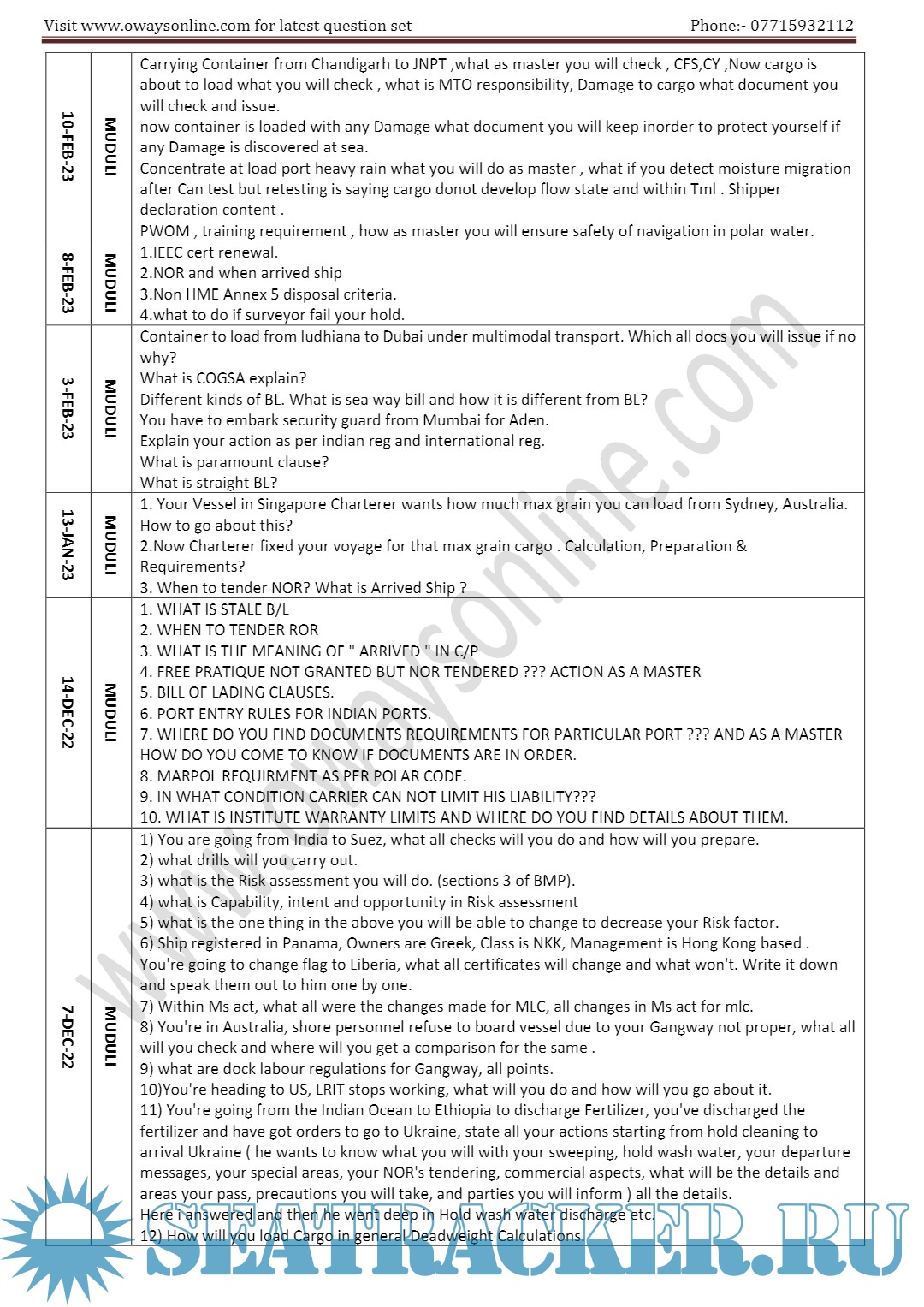Orals Question Bank (May 2023) for ASM (Advanced Shipboard Management) / Master's Mercantile…