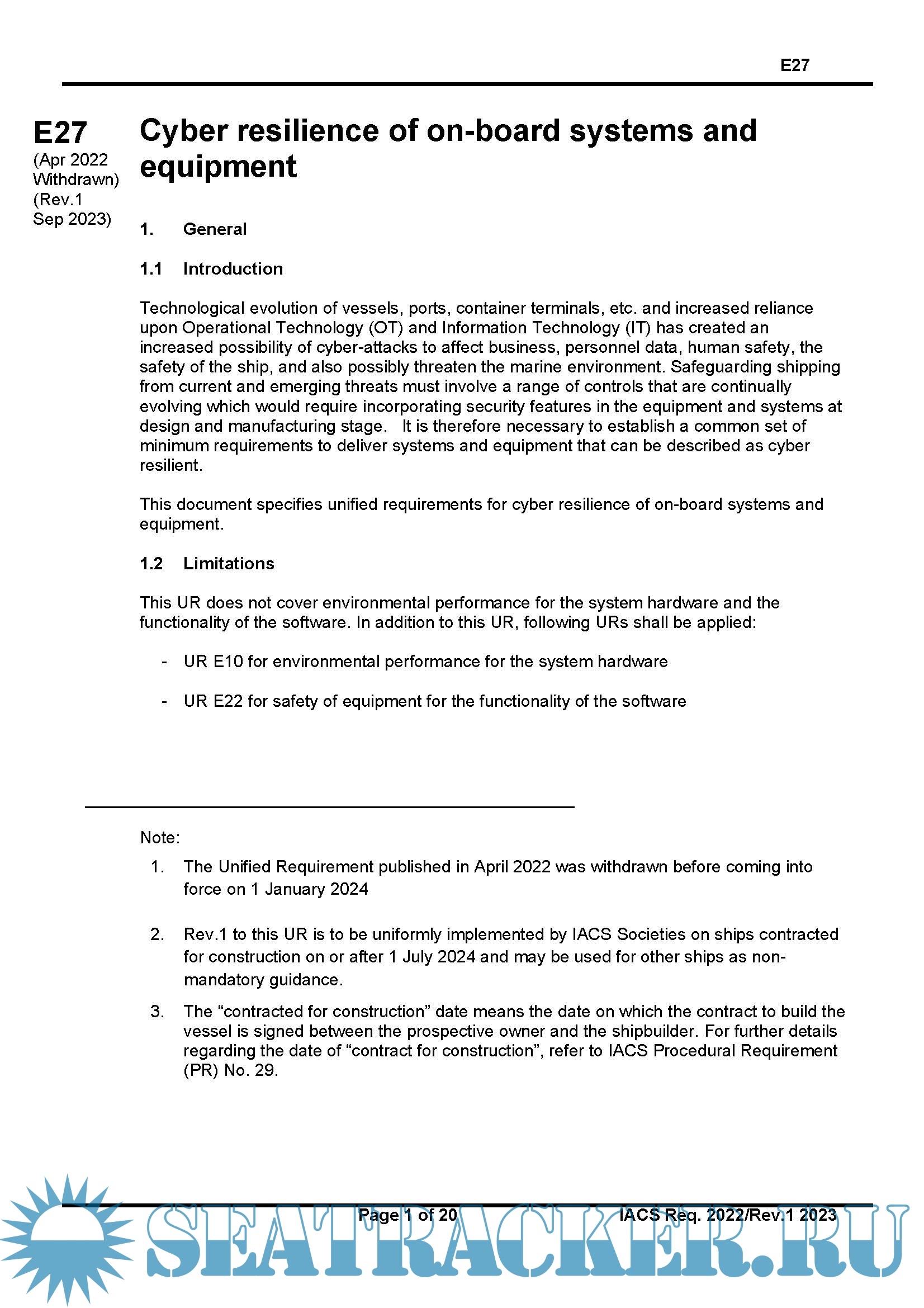 Cyber Resilience of on-board Systems and Equipment E27 - IACS [2022, PDF]