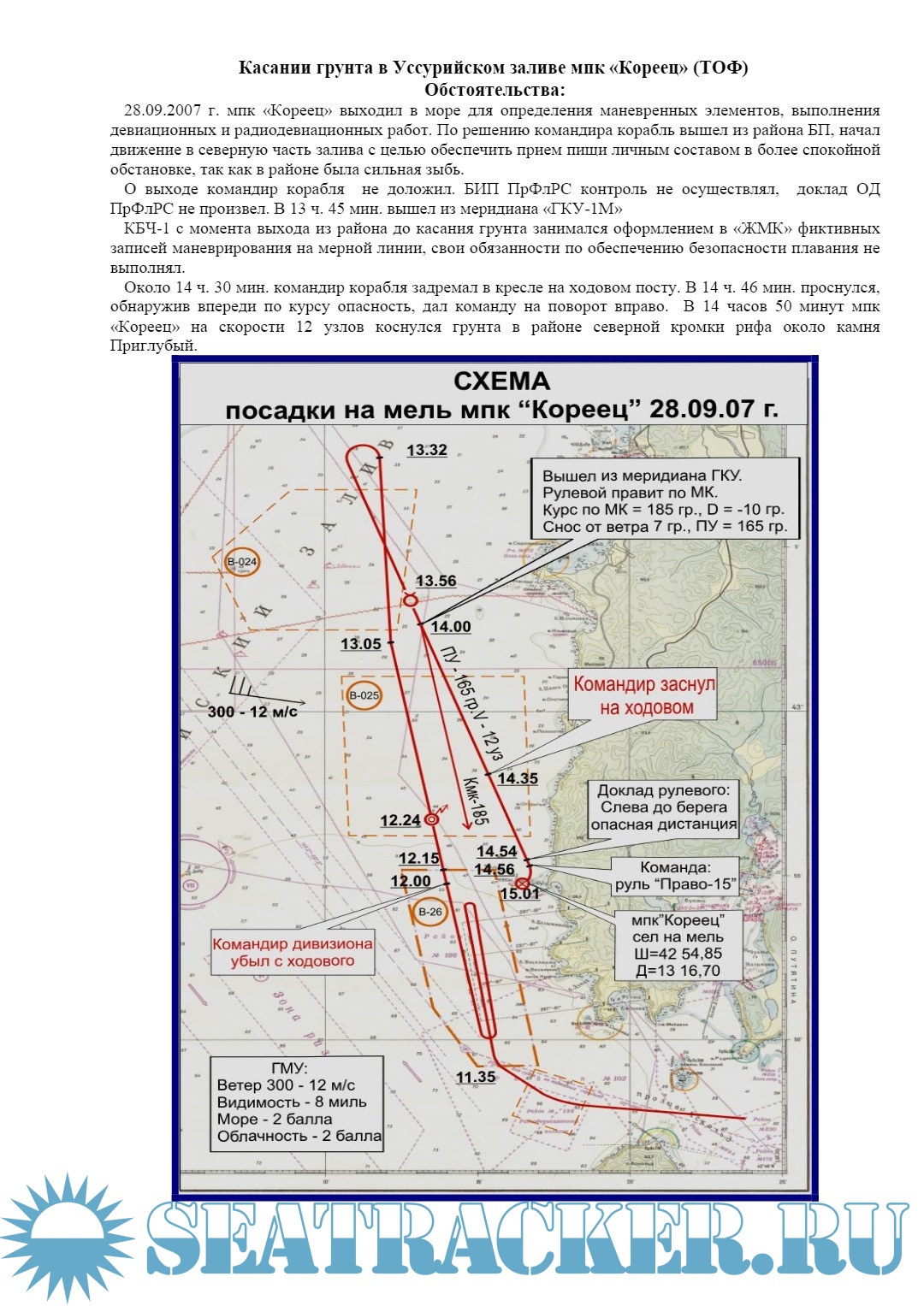 Касании грунта в Уссурийском заливе мпк «Кореец» (ТОФ)
