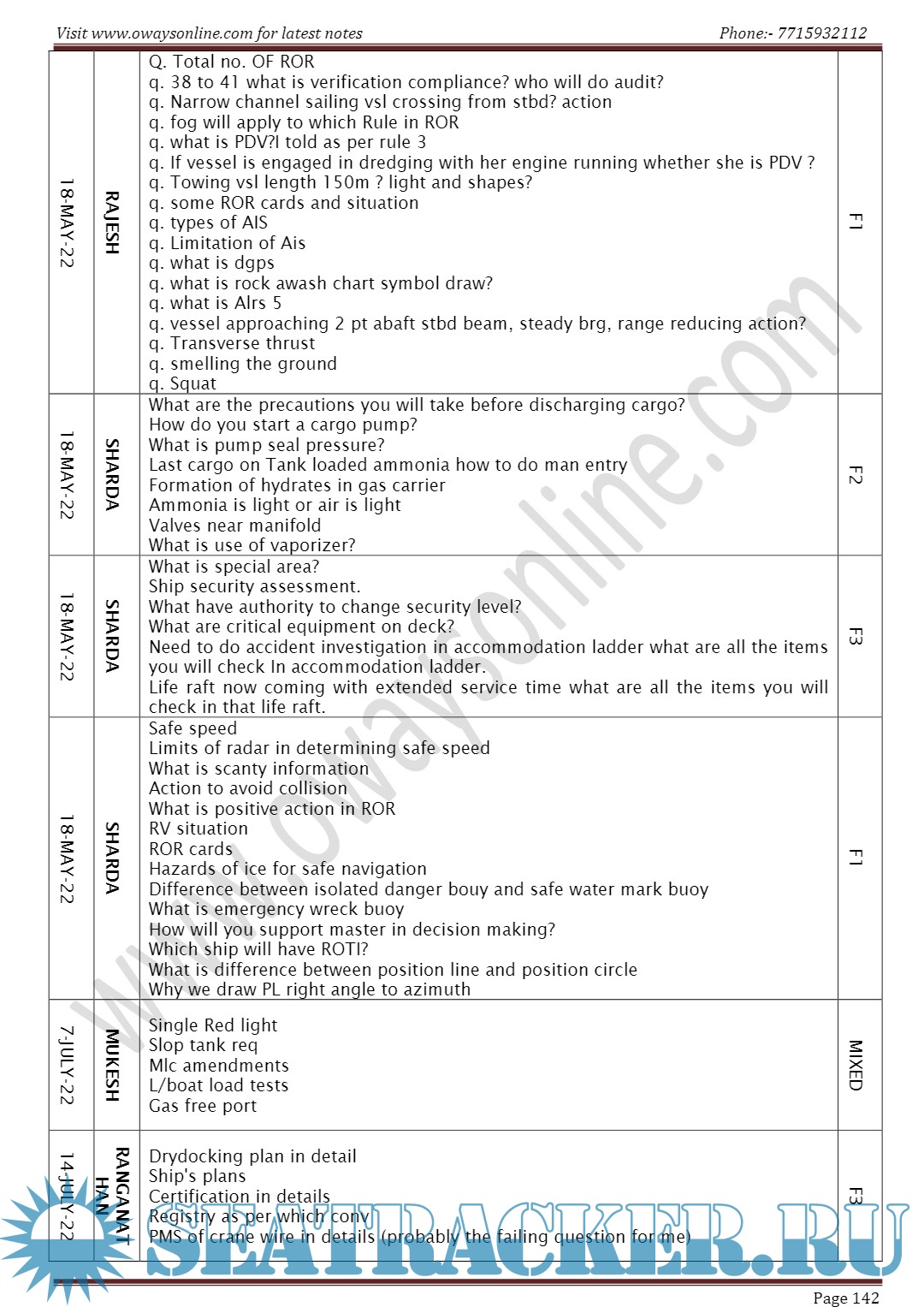 Description: Orals Question Bank for Chief Mate F.G. Mercantile Marine Department (MMD), India Examinations. Segregated as per Functions / Surveyors/ Dates.