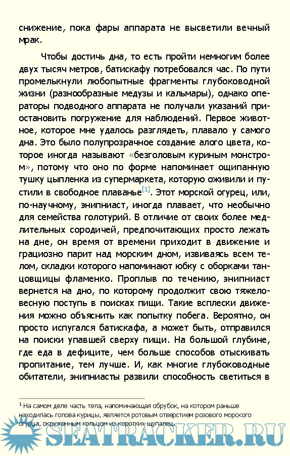 Автор книги, морской биолог, рассказывает о самой удивительной части нашей планеты, топография которой еще более разнообразна и экстремальна, чем у ее земного аналога.