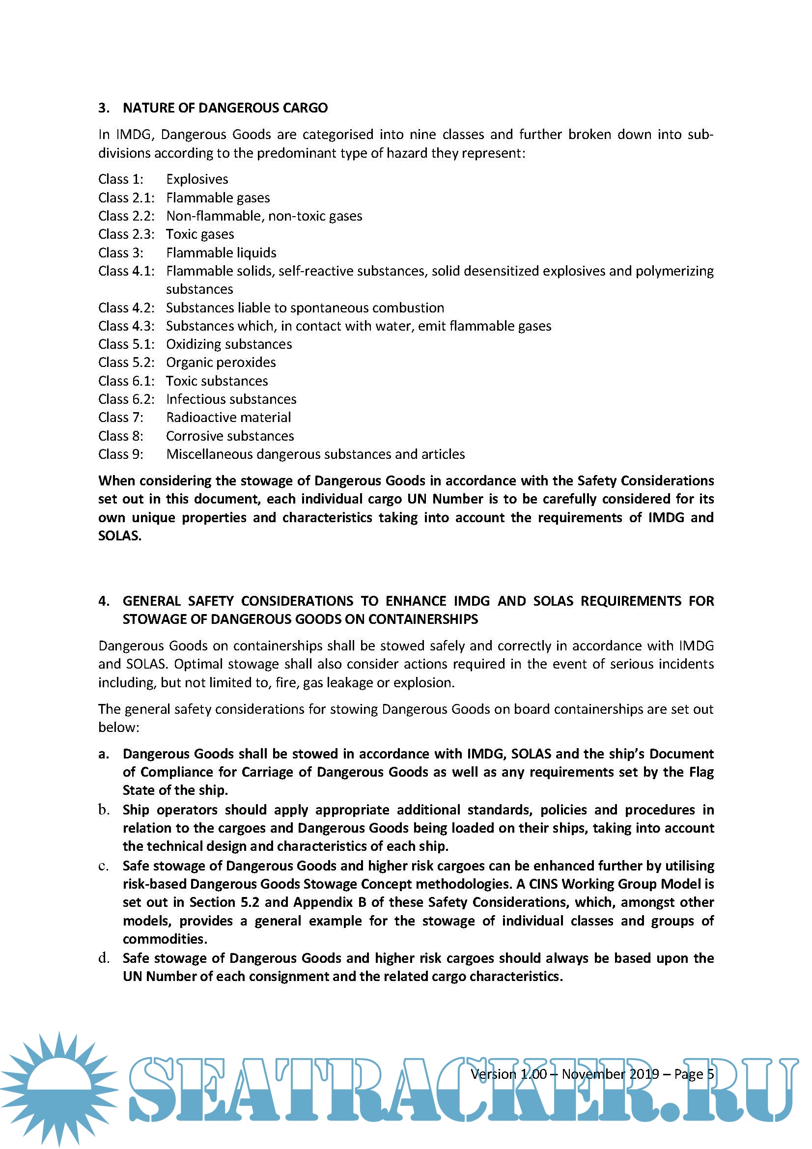Year: 2019 Language: English Author: [url=http://seatracker.info/tracker.php?nm=CINS[/url] Edition: Version 1.00 November 2019 Format: PDF Quality: eBook Pages count: 18 Description: (Cargo Incident Notification System) and Classification Societies as listed below. The development has been coordinated by American Bureau of Shipping (ABS). The target audience includes ship operators, cargo carriers, and port personnel. The scope of this document is considered to be a first stage in a collective industry approach on this important matter which is designed to enhance safety on board container ships, recognising the significant complexities involved in achieving effective and compliant stowage of containers. Further, arising as they do from serious fire incidents in recent years, often relating to deficiencies in cargo declaration and packing, these Safety Considerations represent one of a number industry and regulatory initiatives.