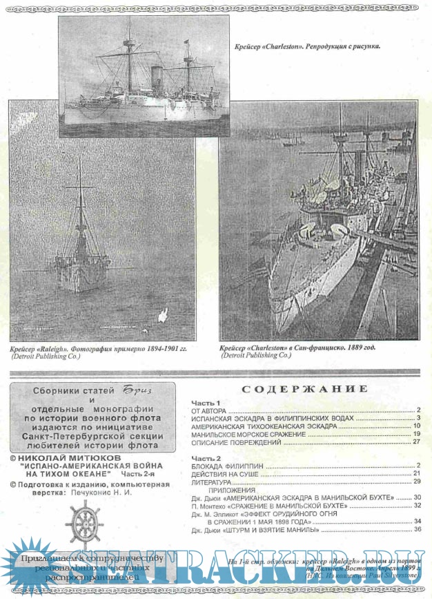 Год выпуска: 2003 Язык: русский Автор: Митюков Н.В. Жанр: История Издательство: Бриз Издание: спеиальный выпуск Формат: PDF Качество: Отсканированные страницы Количество страниц: 40 Описание: В 1998 году исполнилось 100 лет испано-американской войне, военный аспект боевых действий которой в отечественной историографии практически не поднимается. Немногих советских историков, занимавшихся изучением событий на Филиппинах 1898 года, например, Л.А. Губера, Л.Ю. Слезкина, более интересовали дипломатические аспекты кампании. Описание боевых действий у них носит поверхностный характер, и зачастую содержит грубейшие ошибки. Появившаяся недавно книга Р.В. Кондратенко, хоть и иллюстрирована редкими фотографиями, представляет лишь попытку опубликовать архивные сведения столетней давности. А первыми и единственными наиболее квалифицированными работами на русском языке по данному вопросу до сих пор являются, пожалуй, отчеты полковников генерального штаба Я.Г. Жилинского и Н.С. Ермолова, да несколько очерков из Морского сборника конца позапрошлого века. Безусловно, эти работы содержит интересные сведения и написаны квалифицированным языком. Но писались они по горячим следам и, как следствие, не смогли избежать ряда досадных неточностей и недоразумений. Между тем все эти ошибки продолжают переходить из книги в книгу, нередко приобретая еще более далекий от истины смысл. Поэтому с сожалением следует признать, что по-настоящему квалифицированного труда по данному вопросу на русском языке попросту не существует. Данная работа призвана восполнить существующие пробелы и исправить ошибки. Вторая часть посвящена боевым действиям на Тихоокеанском театре в ходе Испано-американской войны 1898 года.