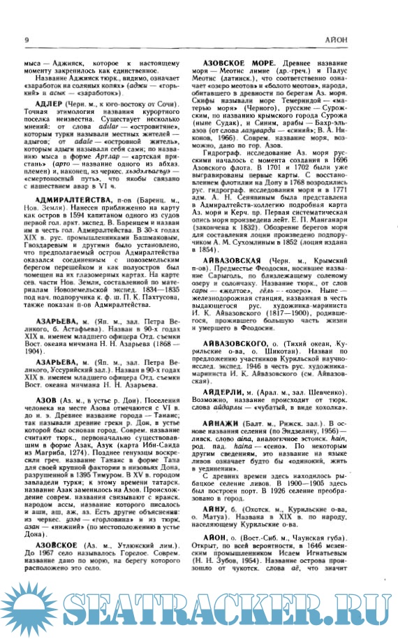Алфавитный справочник по истории географических названий на побережье СССР