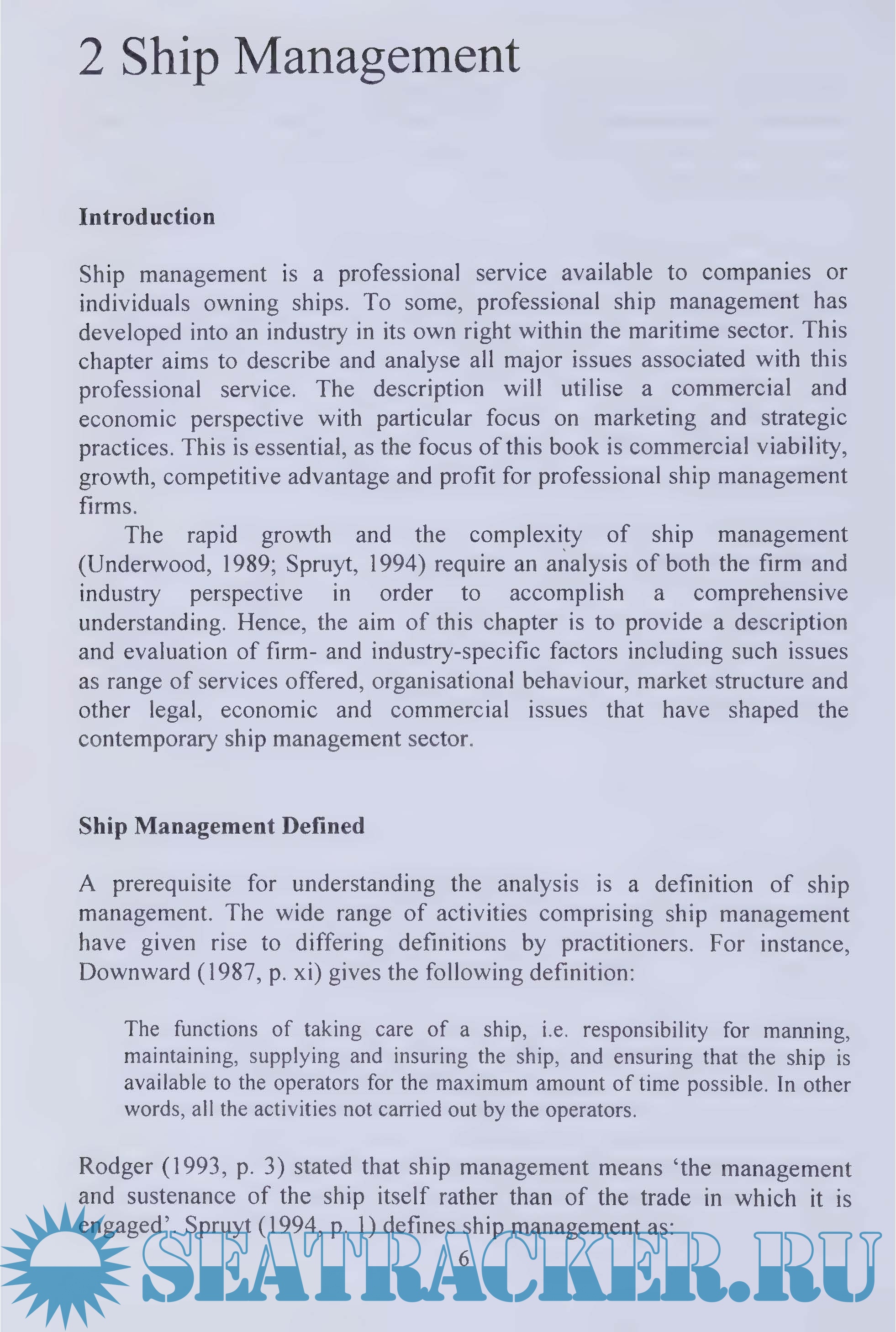 Description: Professional ship management represents a structural change in the maritime industry - there was a period when ships were managed by their owners. The strides towards growth and the importance of ship management have been recognized since the early 1970s. Large ship management companies can offer benefits to their clients that culminate in the improved efficiency of the shipping market at large. Efficiency arises from the effective use of resources so as to produce the maximum output with the least input. Large shipping management firms can do this because they can reduce average costs by virtue of their size, as well as maintaining effective organization of resources by virtue of their professionalism.