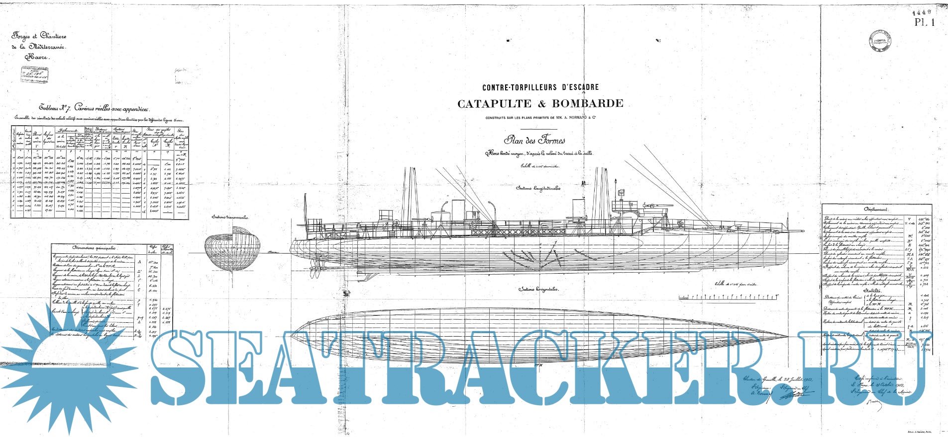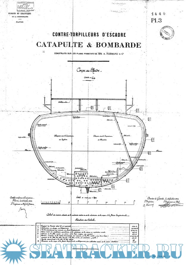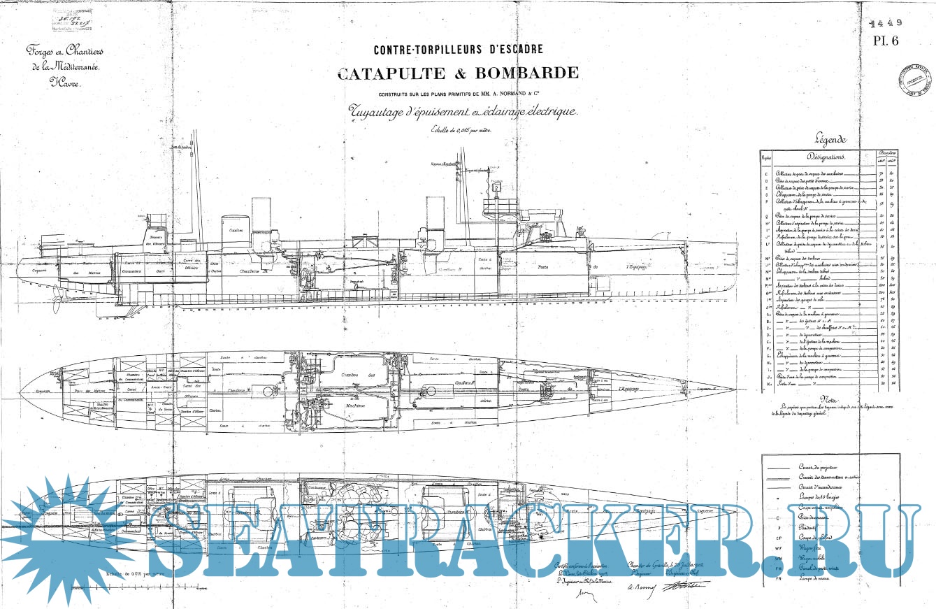 Архивные чертежи французского миноносца CATAPULTE 1903 год