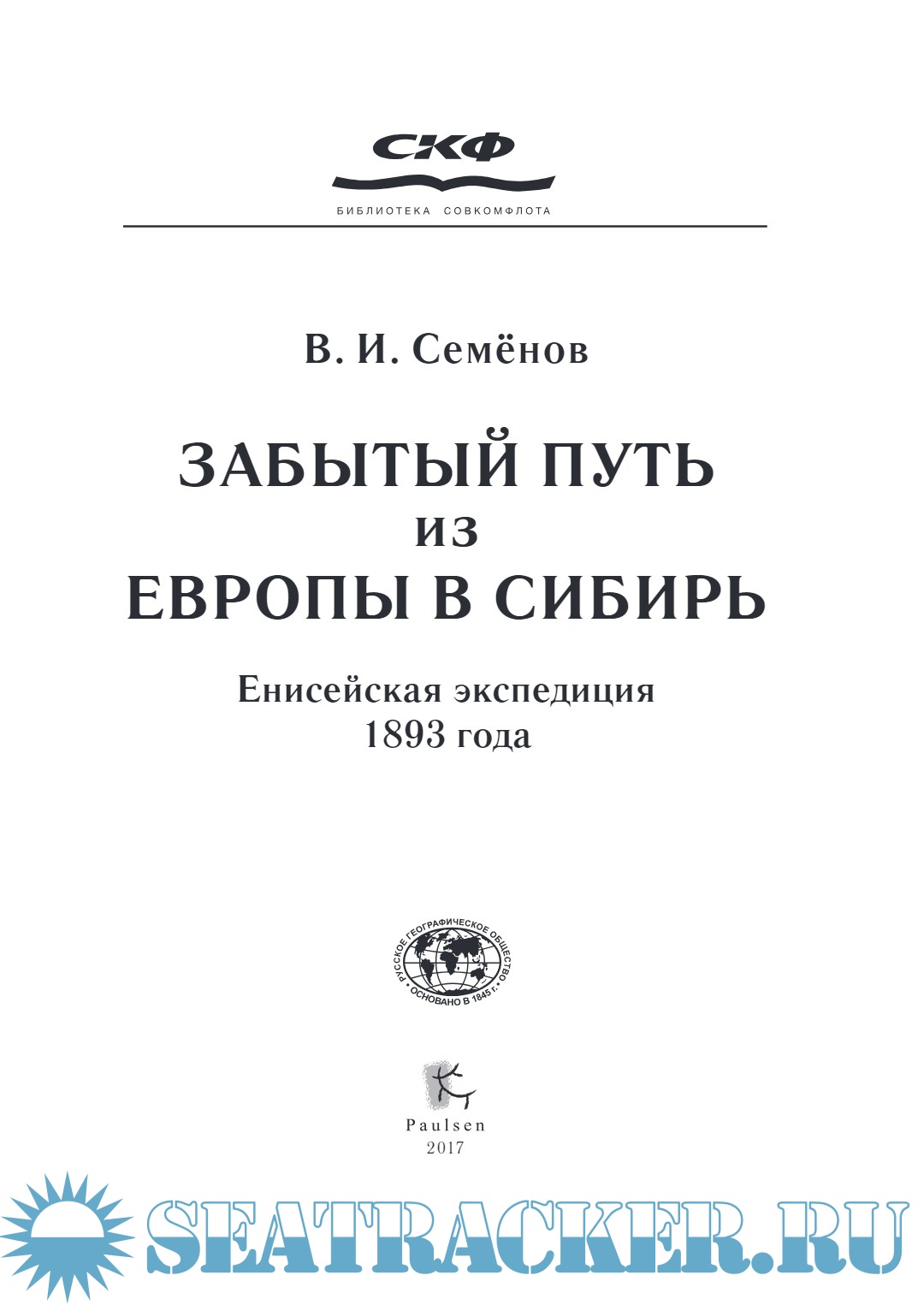 Описание: Книга посвящена истории Енисейской экспедиции 1893 г. – плаванию двух пароходов и баржи из Англии в устье Енисея. На небольших судах в Сибирь были доставлены рельсы, необходимые для постройки Транссибирской магистрали. Русским морякам удалось совершить ряд открытий и существенно уточнить морские карты. Плавание имело государственное и научное значение. Суда шли под Андреевским флагом, который не появлялся в этих водах с середины XVIII в. Одним из главных результатов экспедиции стало подтверждение факта, что морской путь в Енисей из Европы доступен в определённое время года. Экспедиция дала толчок к дальнейшим исследованиям, и к 1904 г. гидрографами Российского императорского флота было составлено подробное описание обширного района от Югорского Шара до Енисея. Этой интересной, но полузабытой странице истории флота и освоения Арктики посвящена книга Владимира Ивановича Семёнова (1867–1910) – участника событий, моряка-писателя, работами которого зачитывалась дореволюционная Россия. Книга переиздается впервые с 1910 г.
