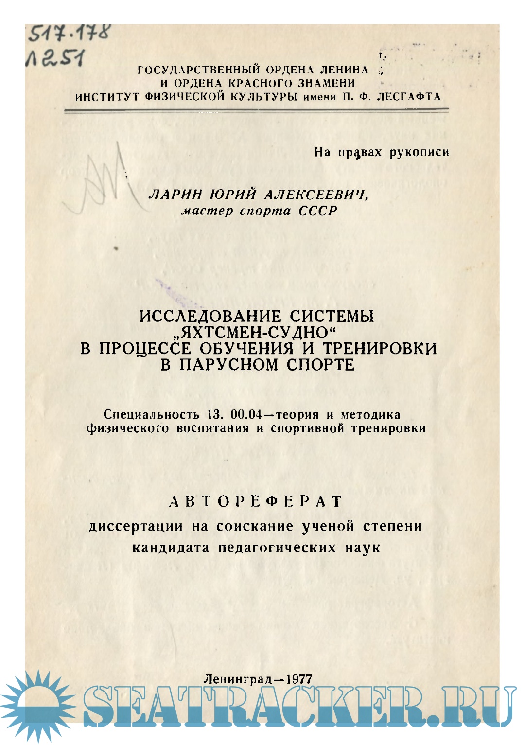 Ларин Ю.А. Исследование системы „яхтсмен-судно в процессе обучения и тренировки в парусном спорте, 1977.pdf