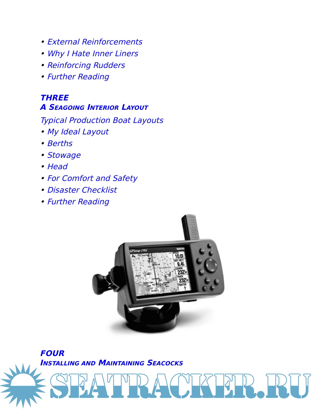 Year: 2006 Language: English Author: Spurr D. Genre: Manual Publisher: International Marine/Ragged Mountain Press Edition: 3rd ISBN: 9780071455367 Format: PDF/EPUB Quality: eBook Pages count: 1003 Description: Is your boat ready to go cruising? Just about every sailboat―used and new―can make a good cruiser, but only if the hull-deck structure, rig, and systems meet certain standards. Spurr’s Guide to Upgrading Your Cruising Sailboat tells you what those standards are, and gives you all the help you need to refurbish and upgrade every structure, surface, fitting, and system on your boat―stem to stern, project by project. This all-in-one guide leads you step by step to a seaworthy, crew-friendly boat with top-notch cruising performance. Not only will you learn what to look for when you buy a new or used boat, you'll also learn how to reinforce your boat’s hull and structural components, redesign and replace rigging, upgrade electrical systems, and much more. Special features include: A detailed survey of 70 used and new fiberglass sailboats best suited to offshore sailing Gear and equipment recommendations by brand name Construction details and other essential features of a strong, safe cruising boat How to make critical repairs to the deck, hull, bulkheads, blisters, and portlights
