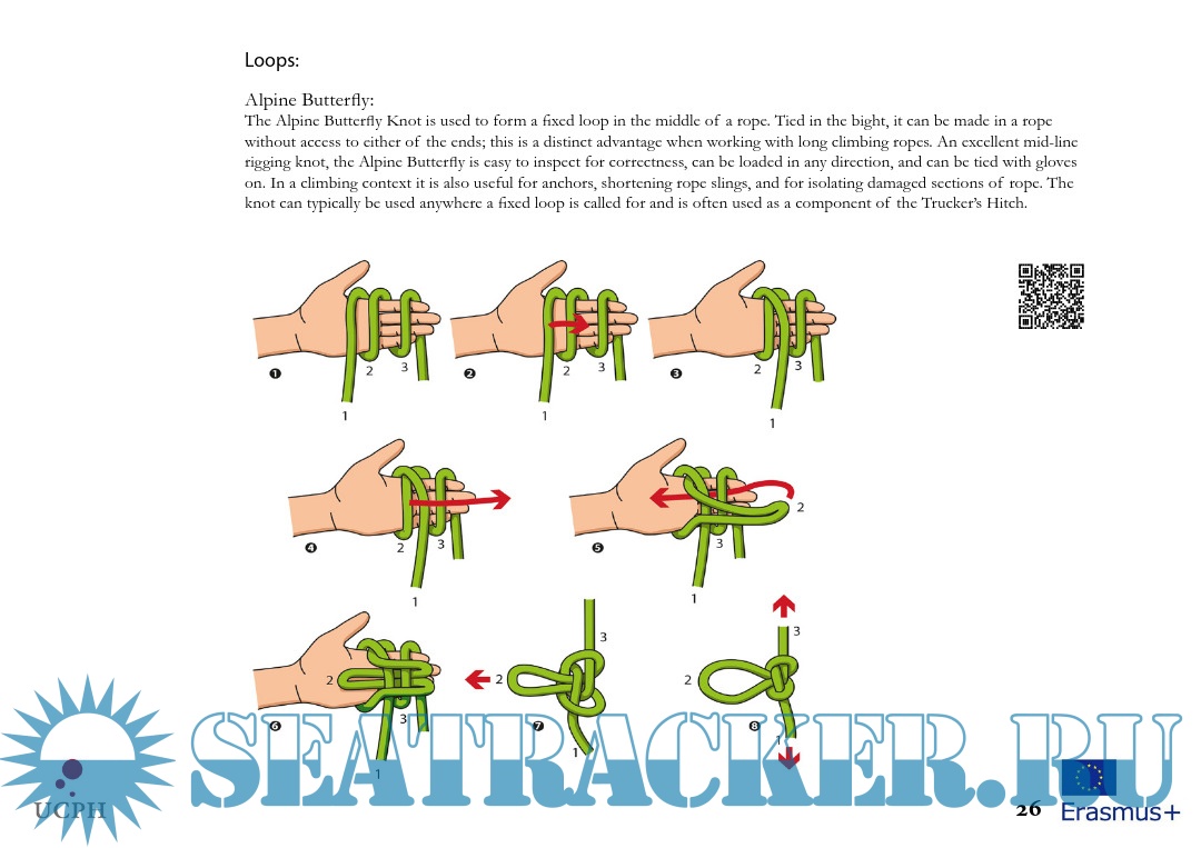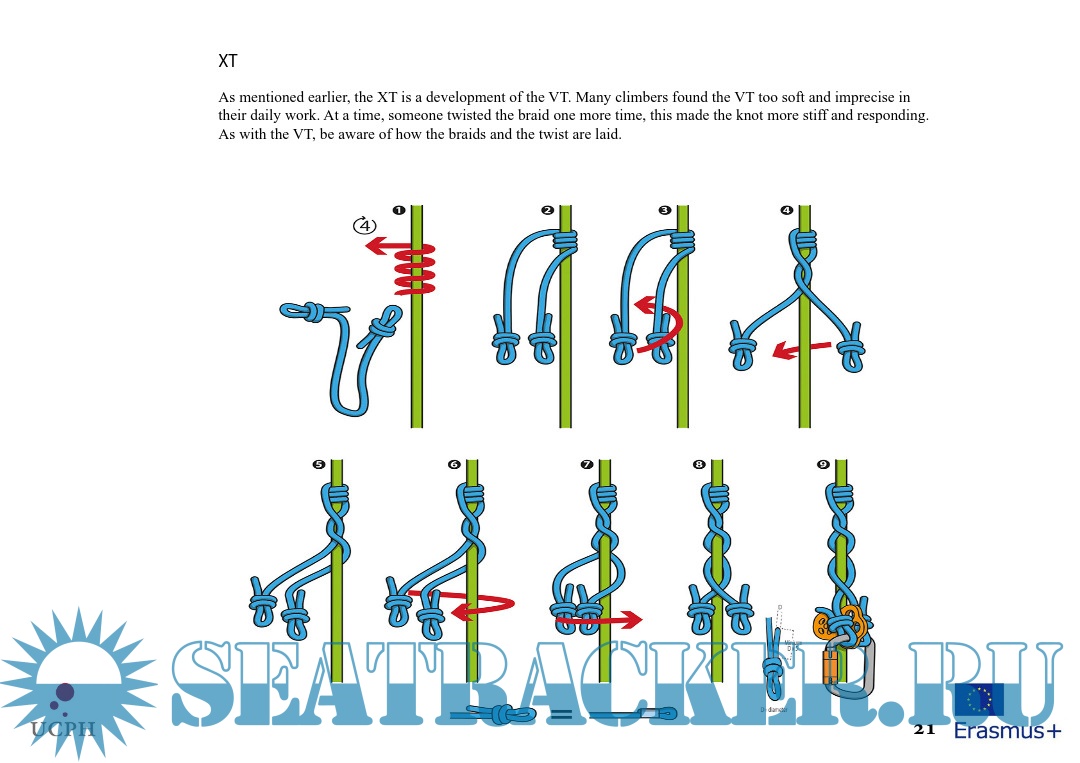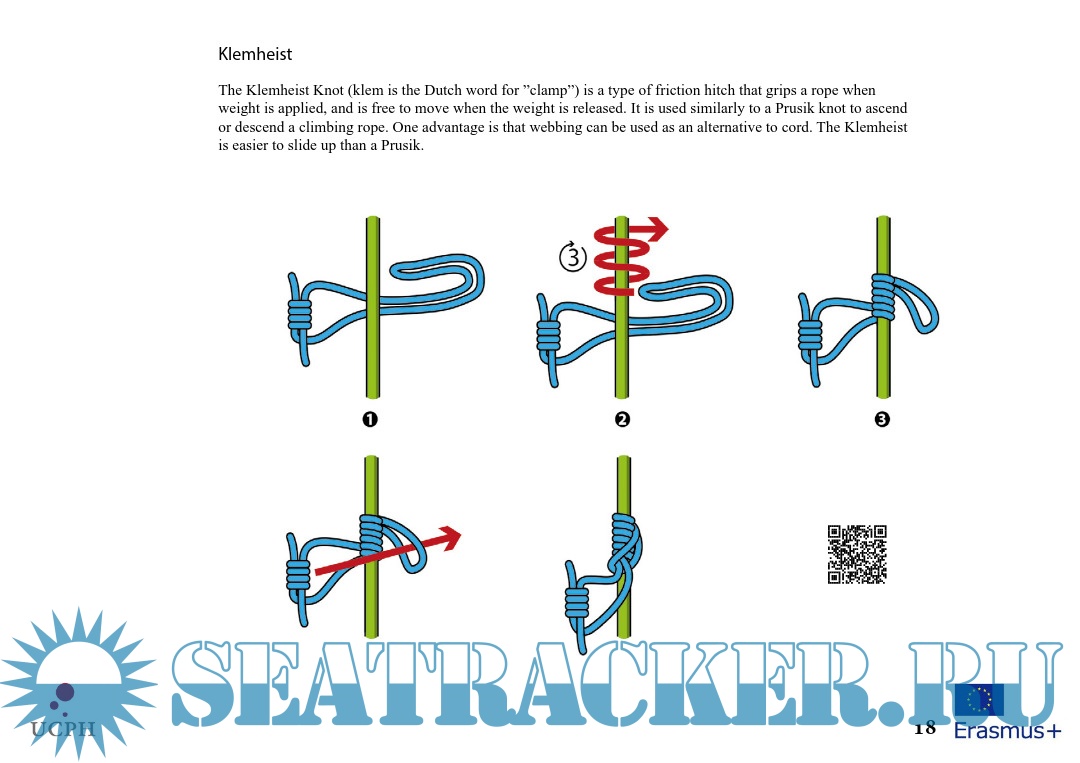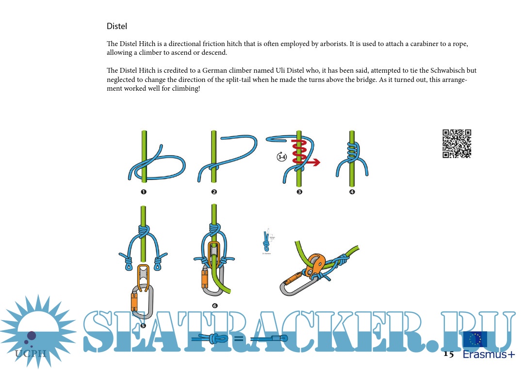Description: Although mechanical friction devices are used more and more both on climbing ropes and in rigging, knots and hitches are still an all-important part of the Arborist’s skills. A reat deal of your system will often be tied together with knots of various types. There is a lot of useful knots for use in Professional Tree Climbing and each week, new ones are appearing. You must be able to tie the most important ones: The same way a carpenter must be able to use a hammer when the nail-gun fails, the Arborist must master knots as a part of her or his daily routine. When stress and tiredness set in, your life may depend on your ability to tie your knots correctly.