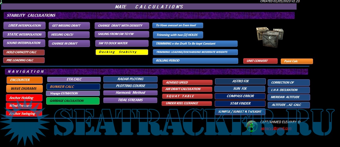 Description: This section will include the Excel calculations and/or various formulas created by me or are widely known which are used in the shipping industry to facility the masters/chief officers or Chief engineers to have accurate results in very little time.