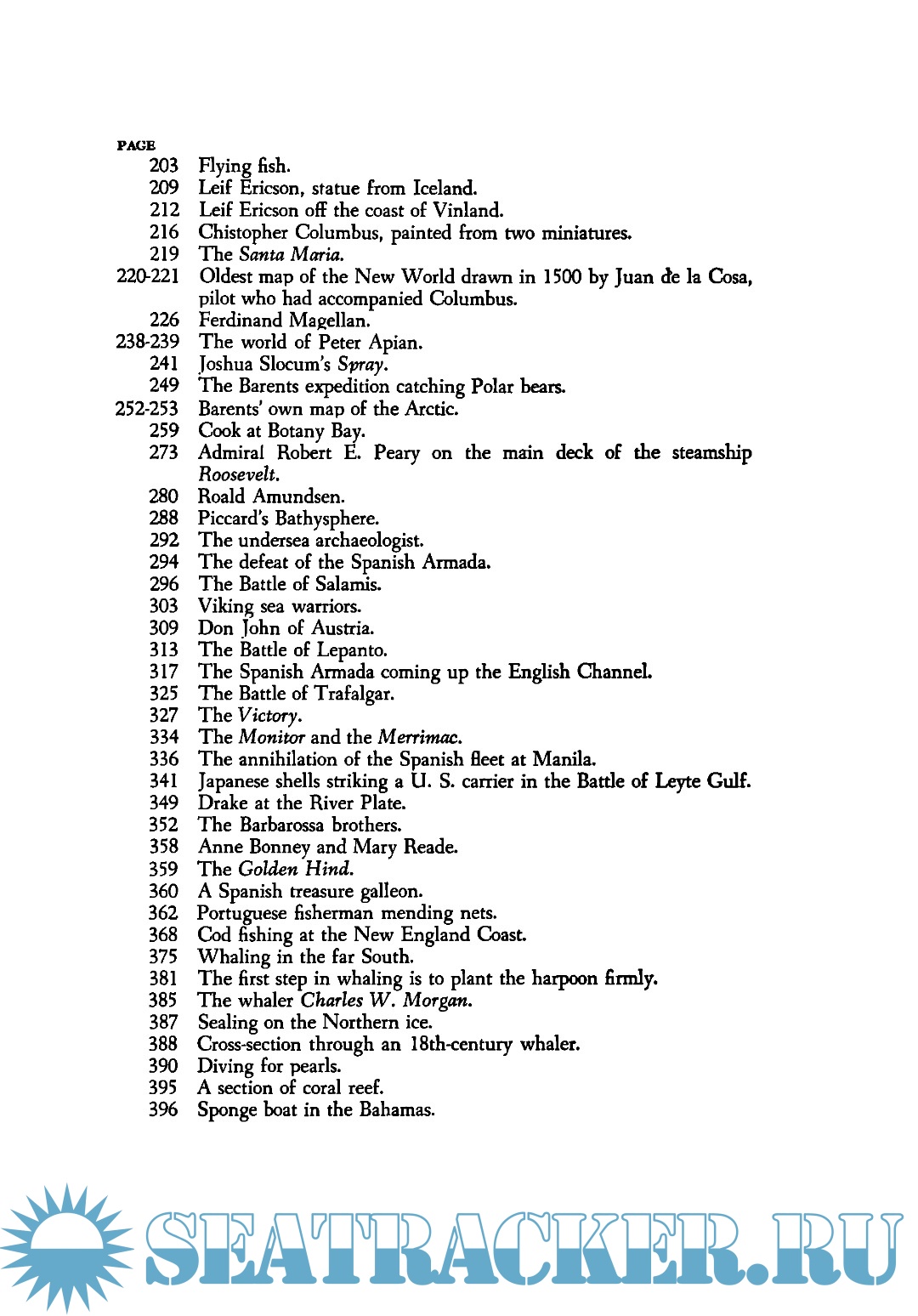 In these pages, readers will wrestle with sea monsters, drift endlessly in hot dead calms, face the wildest storms, battle mighty navies, see strange sights. And they will join the scientists and explorers on their expeditions into the sea and across it — to discover new forms of life, new sources of wealth, new lands to conquer.
