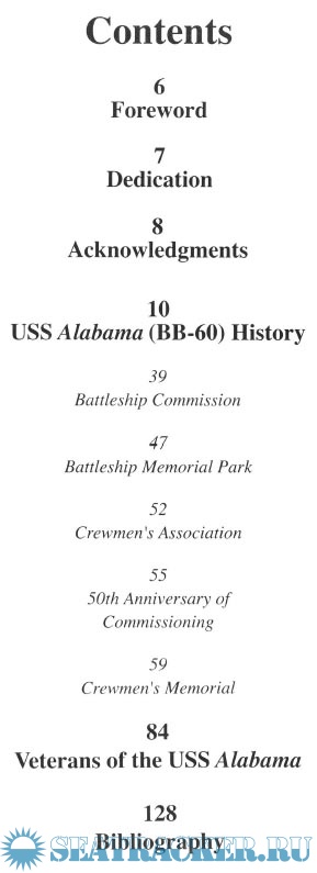Description: The first 40 pages are the stories with pictures about the USS Alabama service during the war. Pages 41-51 is about the turing the USS Alabama into a memorial and all those persons involved. Pages 52 thru 83 lists all of the sailors whom served on the USS Alabama, and the rest of the book pages 84 thru 128 (end) gives then and now pictures with a biography of the living veterans of the USS Alabama circa 1993. All of the book's photos are in black and white.