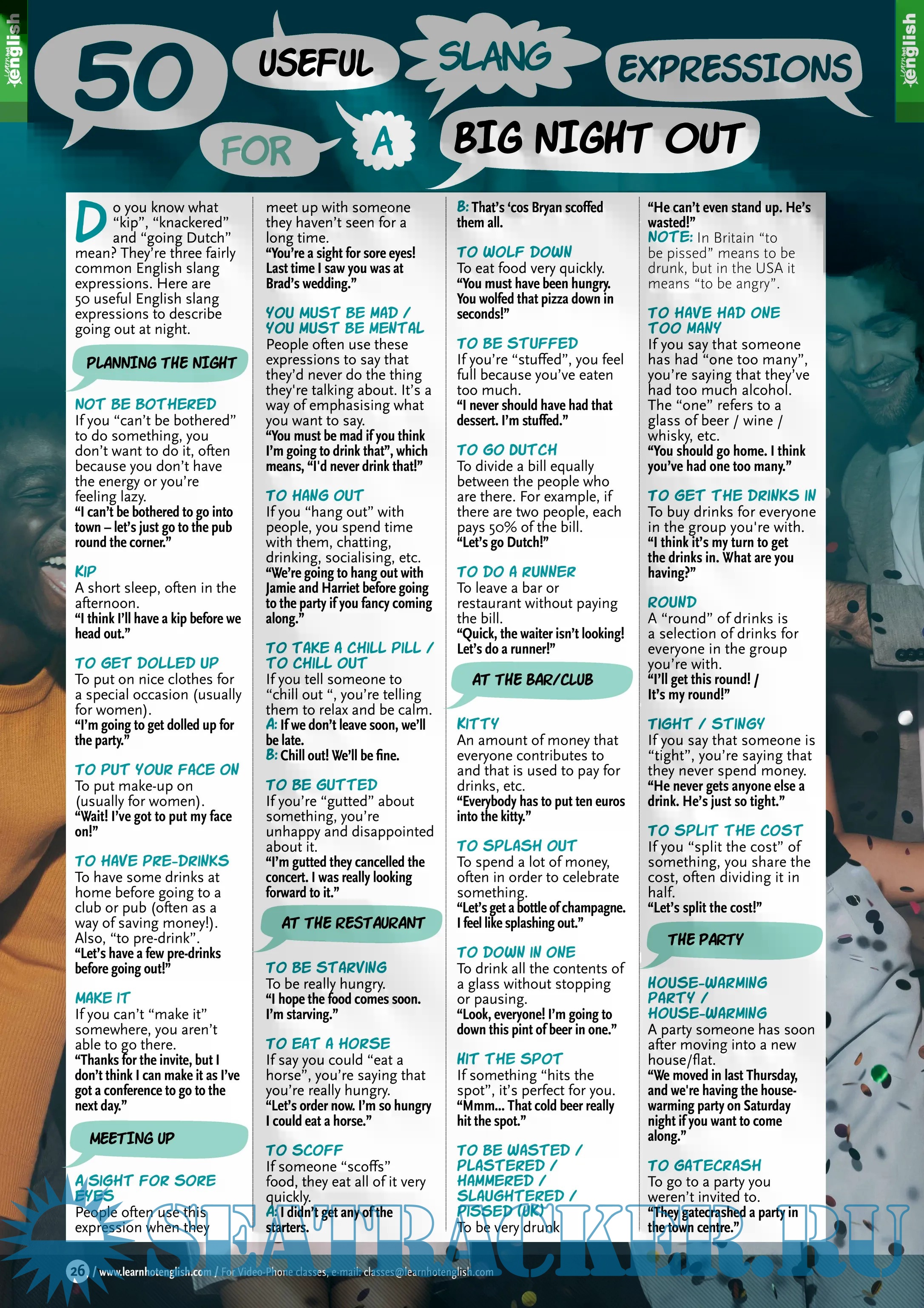 Great news! The latest issue of Hot English (262) is out now! This month: Learn 50 useful slang expressions… for a fun night out!