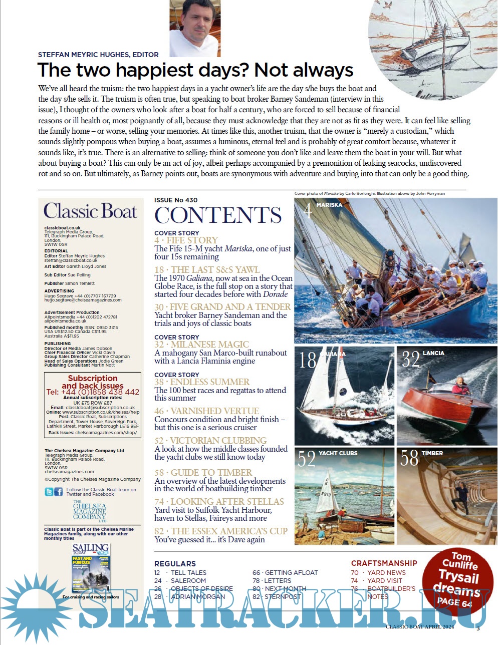 Description: Classic Boat is the magazine for the world’s most beautiful boats. Packed with stunning images, we have the inside stories of the great classic yachts and motorboats afloat today, as well as fascinating tales from yesteryear and the latest from the wooden boat building scene around the world.