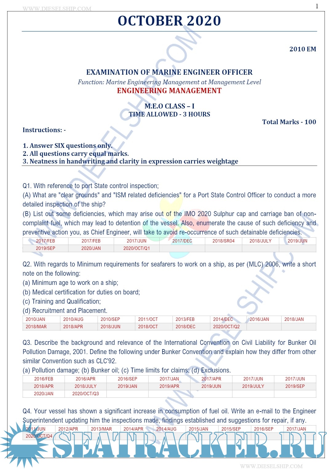 Description: M.E.O. Class I Question Paper set for Mercantile Marine Department (MMD), D.G. Shipping India Exams.