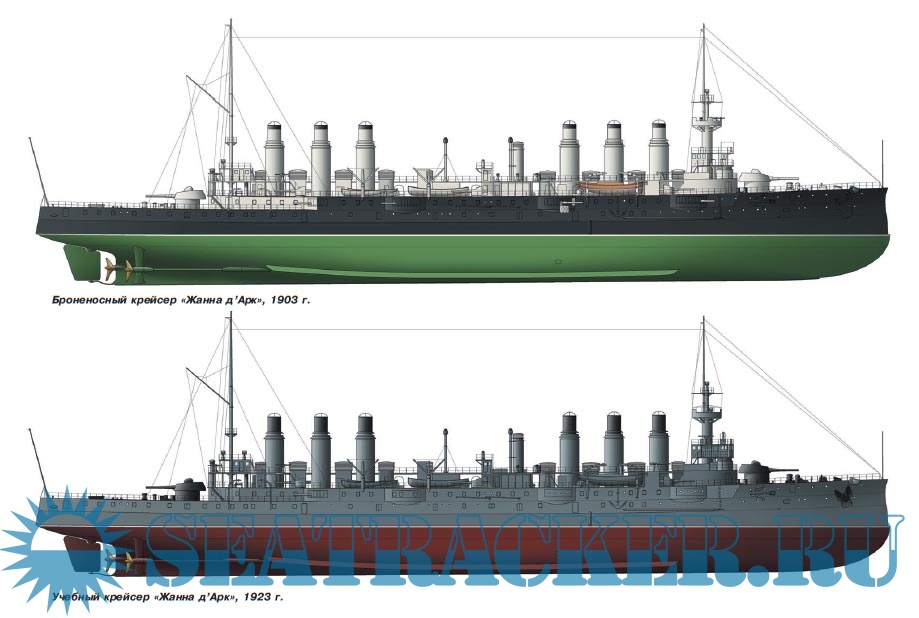 Описание: Тематически данный выпуск продолжает серию публикаций о французских броненосных крейсерах рубежа XIX-ХХ веков. Рассказ о крейсере «Жанна д’Арк». Изначально задуманный как крейсер-стационер 1-го ранга, в процессе проектирования этот корабль прошел несколько стадий и в конечном итоге стал океанским броненосным крейсером, предназначенным бороться с морской торговлей и, тем самым, отвлекать флот противника от своих берегов. Хотя «Жанна д’Арк» не получила возможности на практике реализовать заложенные в нее качества, именно она в основных чертах определила облик французского броненосного крейсера второго поколения (а косвенно - и соответственную реакцию прочих морских держав) и положила начало массовому строительству кораблей данного класса, вскоре полностью вытеснивших бронепалубные крейсера из французских кораблестроительных программ.
