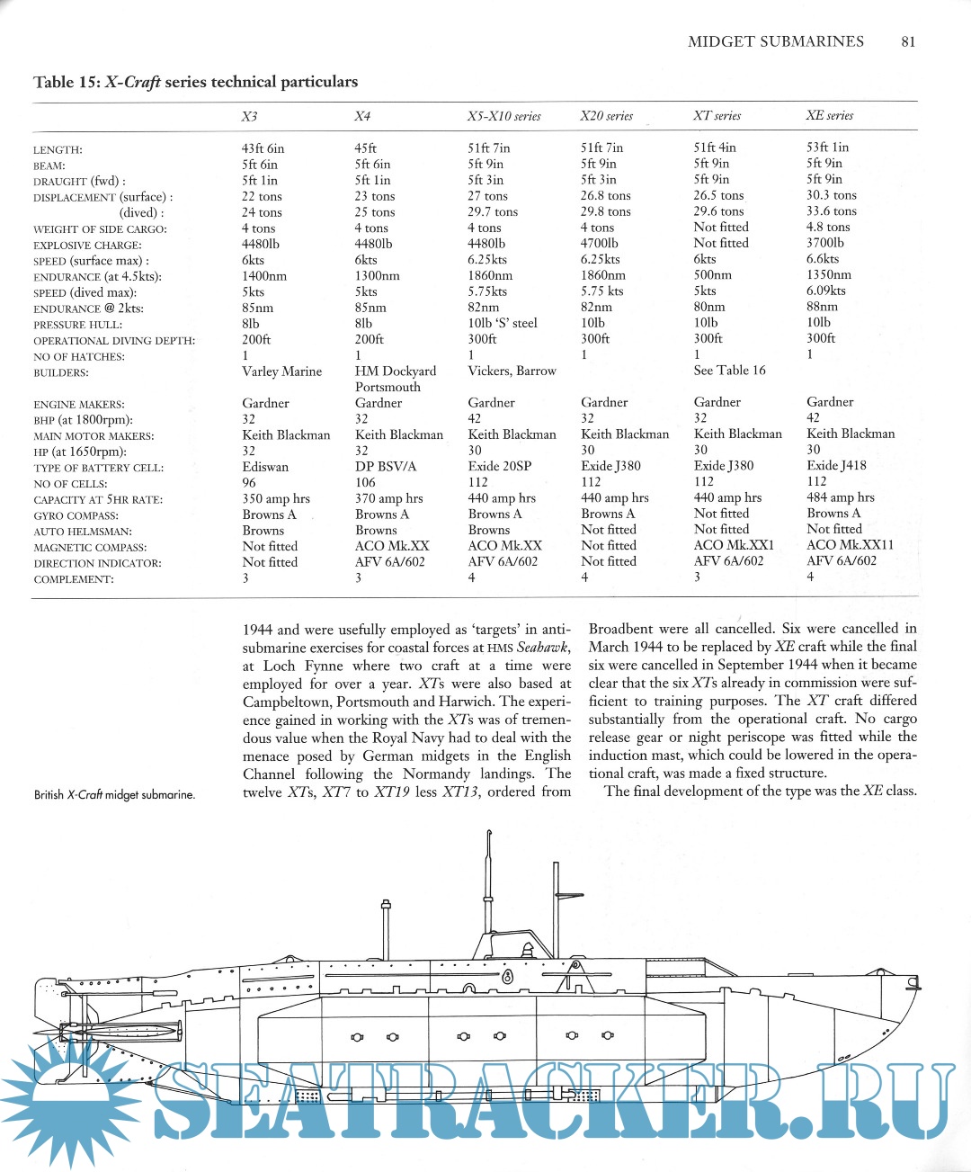 Year: 1999 Language: English Author: Kemp P. Genre: History Publisher: Chatham Publishing Format: PDF Quality: Scanned pages Pages count: 134 Description: The author looks at why major navies engaged in the construction of midget submarines during World War II and then describes all the types that were built. He includes detailed plans and photos of significant interest to modelers and ship enthusiasts. В книге Midget Submarines of the Second World War британский историк Пол Кемп рассказывает о новом классе субмарин появившемся в годы Второй мировой войны - сверхмалых лодках и человекоторпедах. Их строили и применяли Италия , Англия , Япония и Германия. Наибольших успехов в боевом применении удалось добиться итальянскому флоту , тяжело повредившему английские линкоры «Вэлиант» и «Куин Элизабет» что серьезно повлияло на баланс сил на Средиземноморье. Англичанам с помощью миджетов удалось нанести серьезные повреждения линкору «Тирпиц»- в море он больше не выходил. В 1945 году два миджета тяжело повредили японский крейсер «Такао». А вот немецким и японским сверхмалым лодкам таких успехов добиться не удалось , несмотря на их внушительное количество.