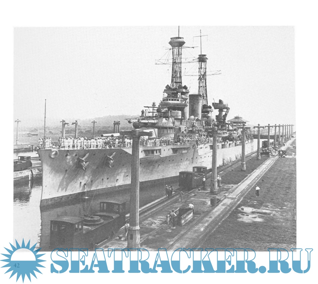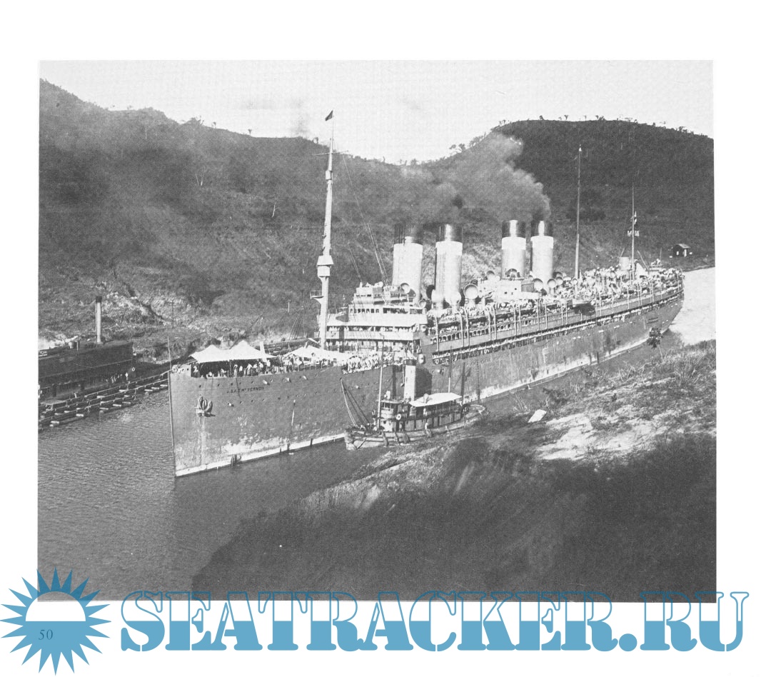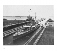Description: This is a photographic and narrative view of shipping that passed through the canal in the first half of the twentieth century, opening with a concise history of the canal itself. The black & white photos were taken by an employee/photographer from advantageous viewpoints along the route. Due to the land elevation they give an almost aerial view of the ships. The book is divided into three chapters devoted to freighters, passenger liners, and warships. Along with each photo is a brief history of the vessel shown.