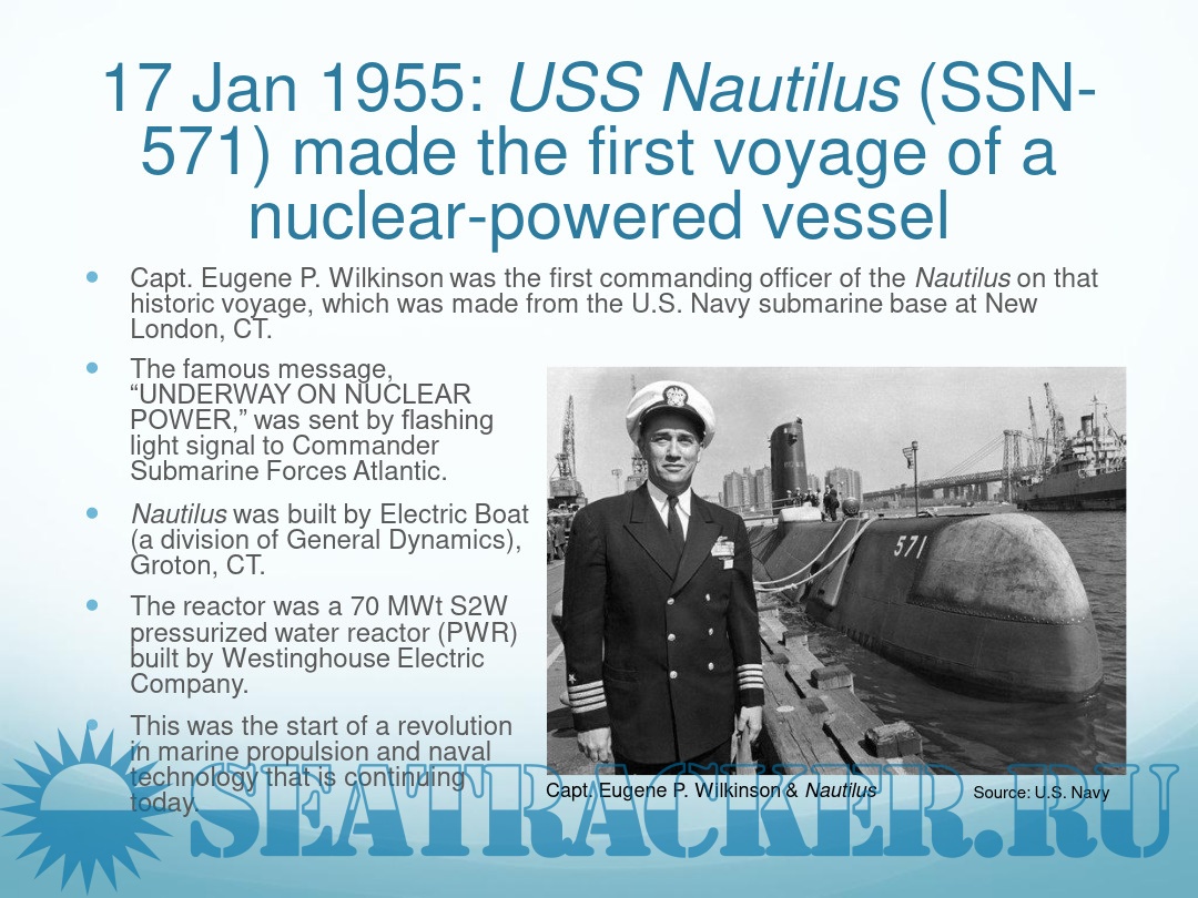Description: This rather lengthy presentation is my attempt to tell a complex story, starting from the early origins of the U.S. Navy’s interest in marine nuclear propulsion in 1939, resetting the clock on 17 January 1955 with the world’s first “underway on nuclear power” by the USS Nautilus,