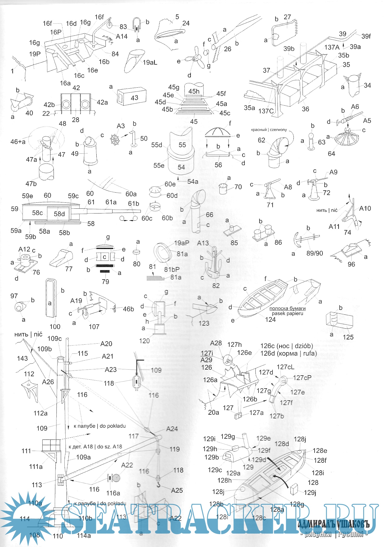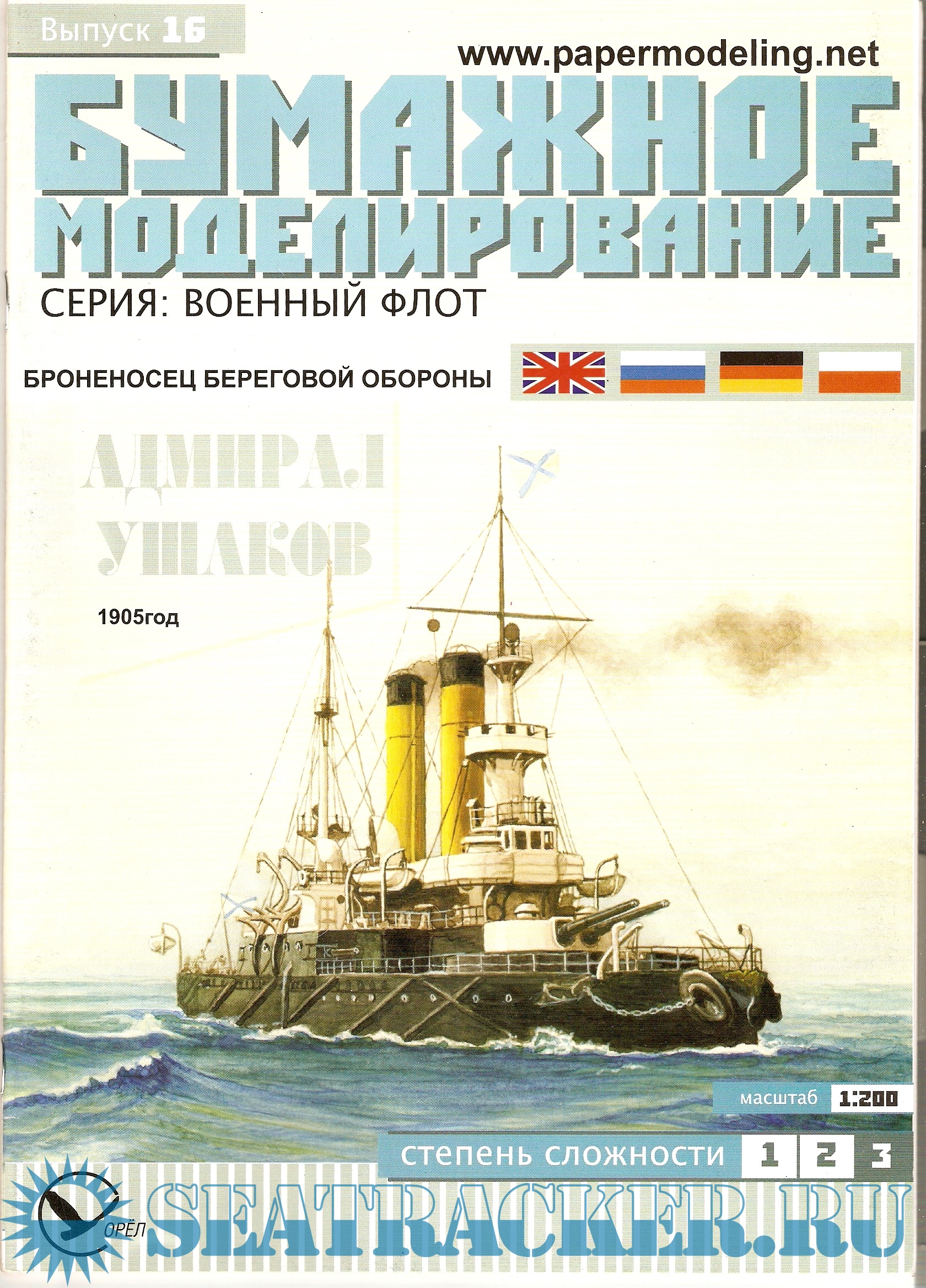 15 листов цветных выкроек и инструкций для изготовления бумажной модели броненосца береговой обороны ''Ушаков'' 1905 год (Россия) в масштабе 1:200Скриншоты