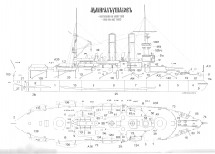 Описание: 15 листов цветных выкроек и инструкций для изготовления бумажной модели броненосца береговой обороны ''Ушаков'' 1905 год (Россия) в масштабе 1:200