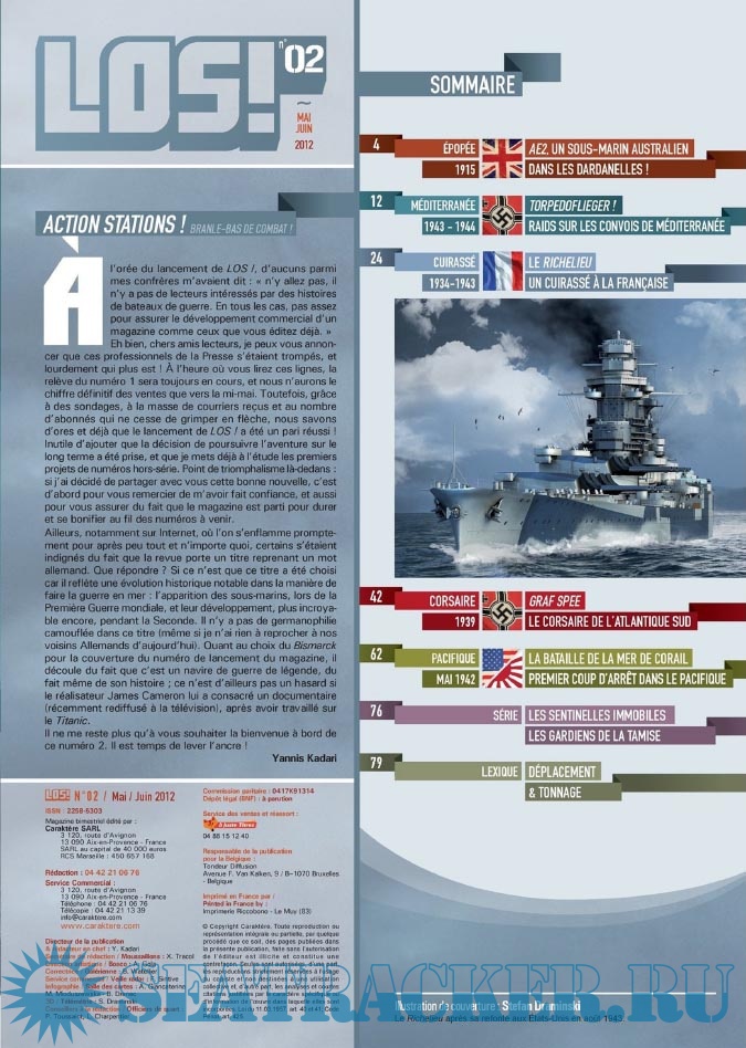 Year: 2012 Language: French Author: Collective Genre: Periodical (magazine) Edition: 2012 05-06 Format: PDF Quality: eBook Pages count: 84 Description: LES ÉDITIONS CARAKTÈRE PRENNENT LE LARGE EN LANÇANT UN NOUVEAU MAGAZINE CONSACRÉ À LA GUERRE NAVALE !Les sujets passionnants ne manquent pas et LOS ! met un point d’honneur à les présenter au lecteur comme cela n’a jamais été fait dans la presse française jusqu’à présent. Un seul mot d’ordre pour l’équipe rédactionnelle : rigueur scientifique et présentation ludique !S’appuyant sur un fond photographique d’exception, sur des plans de bateaux et d’avions, les éditions Caraktère innovent une fois de plus en vous proposant aussi des vues 3D détaillées, le tout au service de textes soigneusement rédigés par des auteurs spécialisés. Vous comprendrez ainsi comment fonctionne un submersible, comment se déroule un combat naval, comment est conçu un cuirassé ou comment attaquent les avions-torpilleurs !Revivez au fil des pages l’aventure humaine exceptionnelle des matelots de la marine marchande affrontant les U-Boote en Arctique, ou celle des pilotes embarqués sur les porte-avions américains et japonais. Lisez les exploits des hommes-grenouilles italiens en Méditerranée, des équipages des vedettes lance-torpilles dans la Manche, des sous-marins soviétiques de la guerre froide ou des grands cuirassés de 1914-18