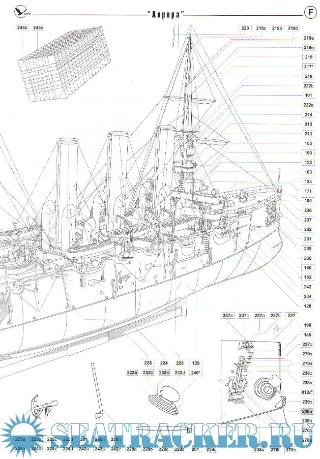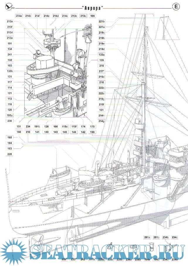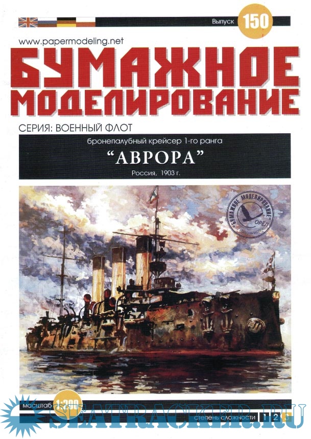 43 листа цветных выкроек и инструкций для изготовления бумажной модели бронепалубного крейсера 1 ранга ''Аврора'' по состоянию на 1903 год в масштабе 1:200Скриншоты